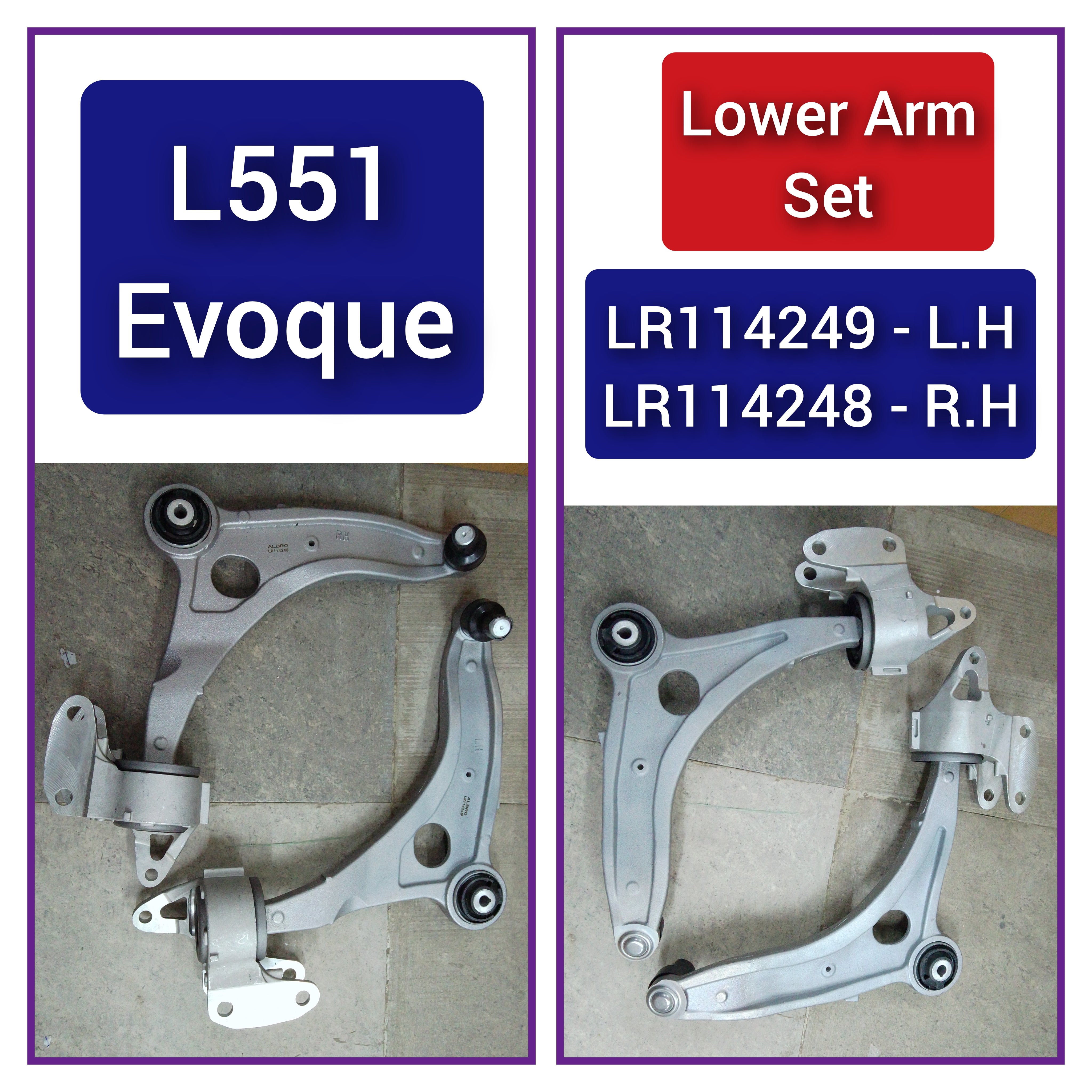 Upgrade your LAND ROVER DISCOVERY SPORT or RANGE ROVER EVOQUE with this Set of 2 Front Lower Control Arms. Expertly designed with LR114249 LR146038 & LR114248 LR146037, these arms provide superior control and stability for a smoother ride. Experience enhanced performance and reliability with this essential upgrade.