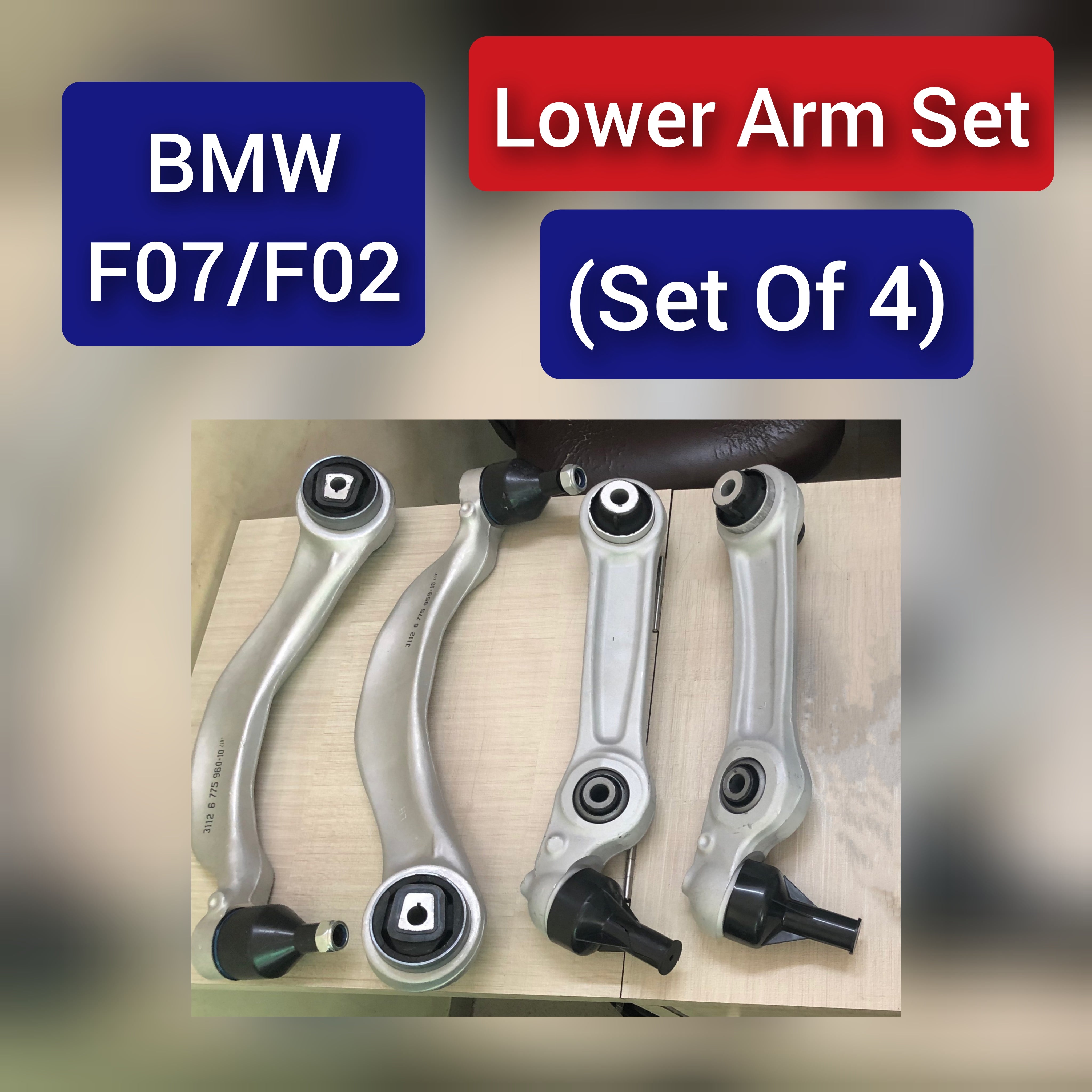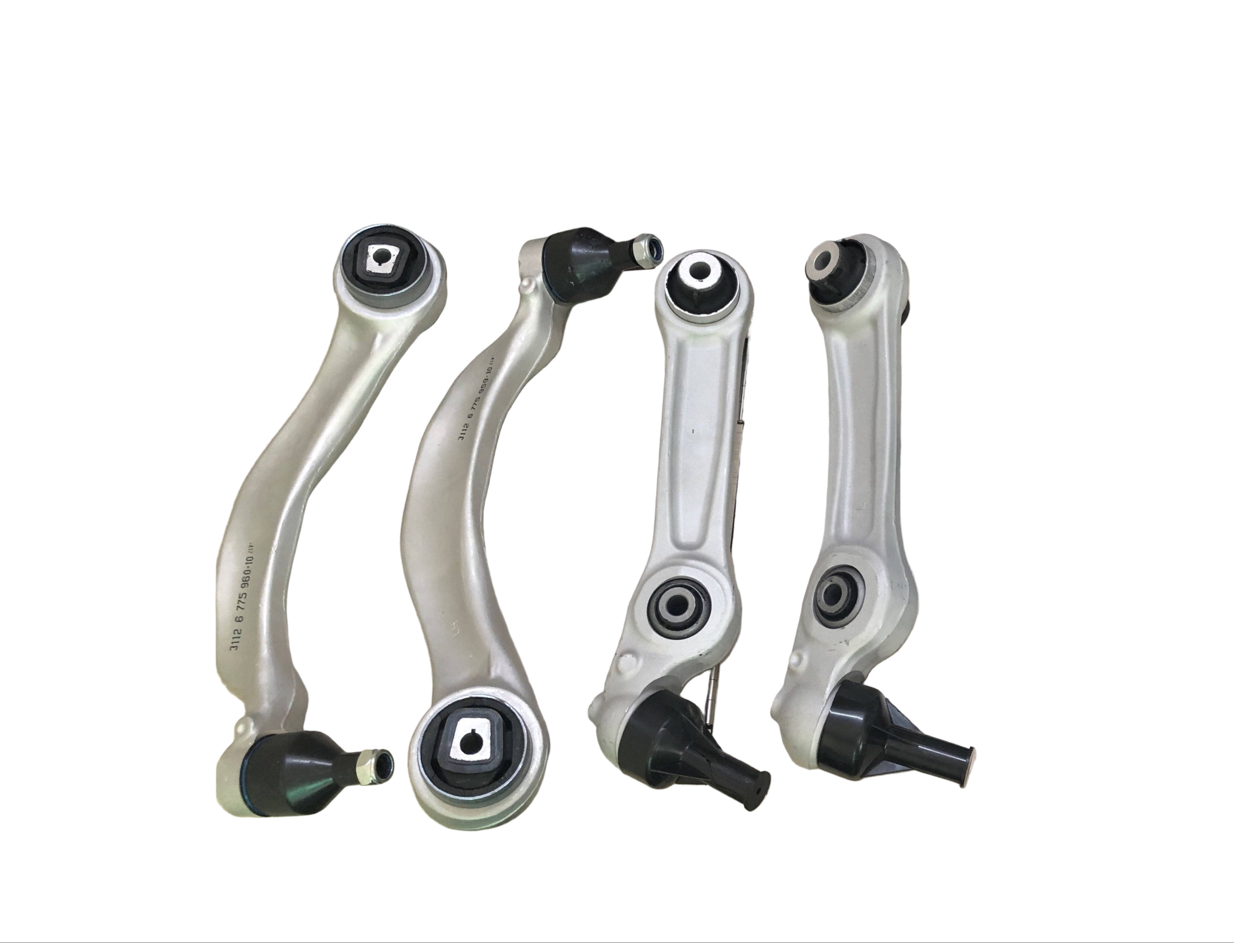 This set of 4 front lower control arms, featuring part numbers 31126798107, 31126768108, 31126775960, and 31126775959, is designed for BMW F07 and F02 models. Built to OEM specifications, these control arms provide accurate suspension alignment, promoting enhanced steering precision, stability, and overall handling performance. Ideal for professional maintenance or upgrades, this set ensures your vehicle maintains optimal safety and driving dynamics.
