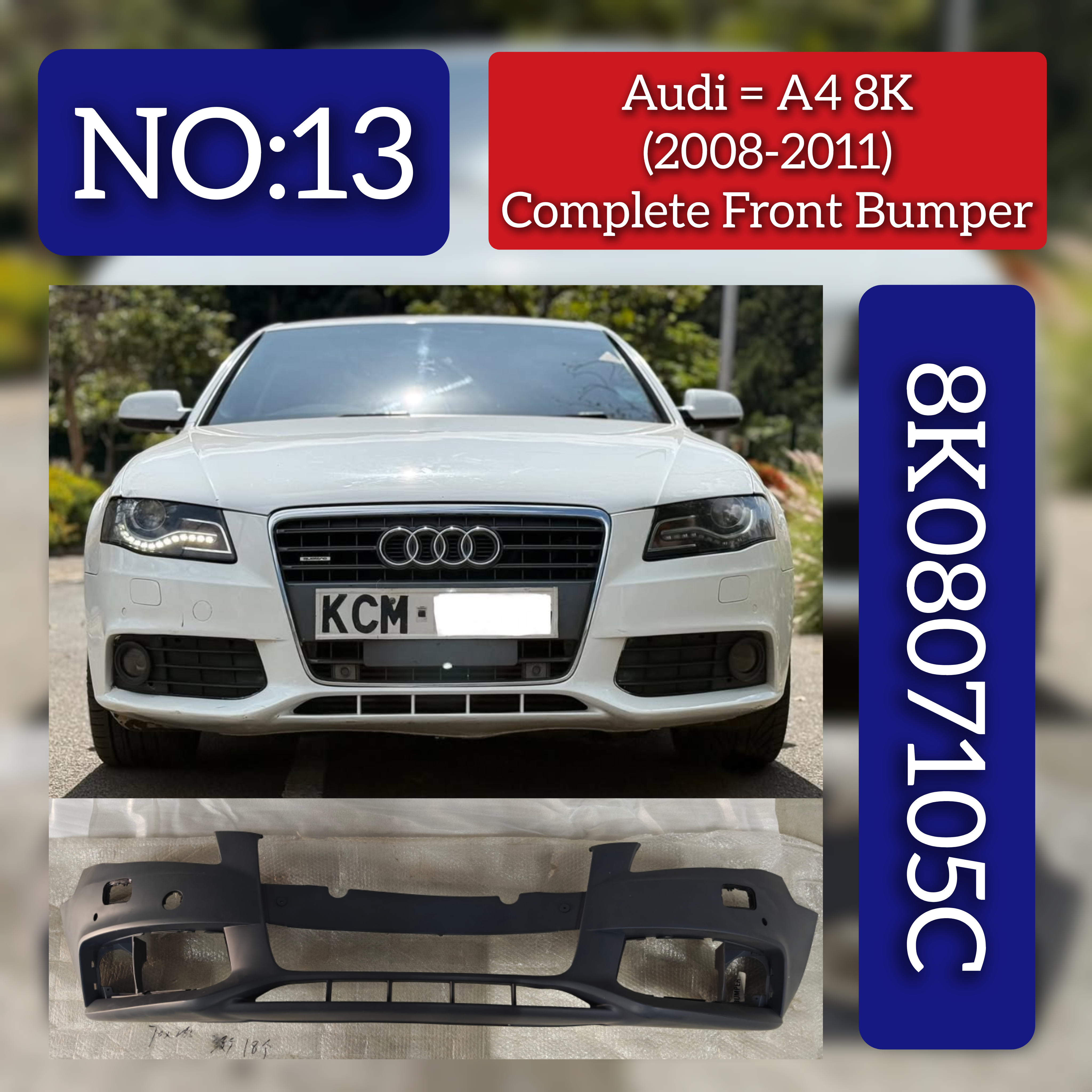 Expertly crafted to fit the AUDI A4 B8 (8K2), this Front Rear Bumper is a perfect match for your vehicle. Made with high-quality materials, it provides both style and protection, ensuring the longevity of your car. Upgrade your A4 / S4 with this compatible bumper for a sleek and functional look.