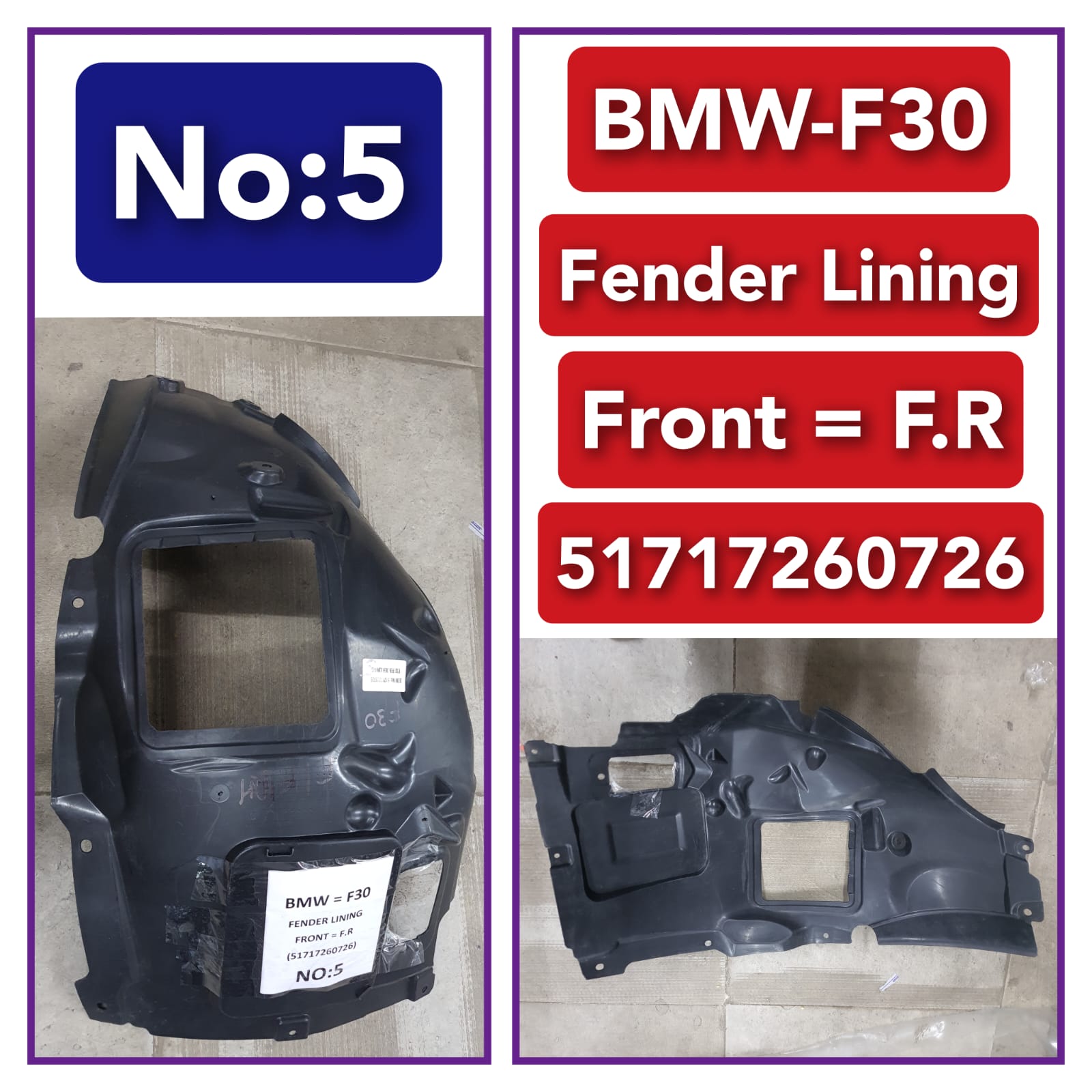 Front Right Fender Liner 51717260726 Compatible With BMW 3 Series F30 F80 (2012-2018) Tag-FE-05