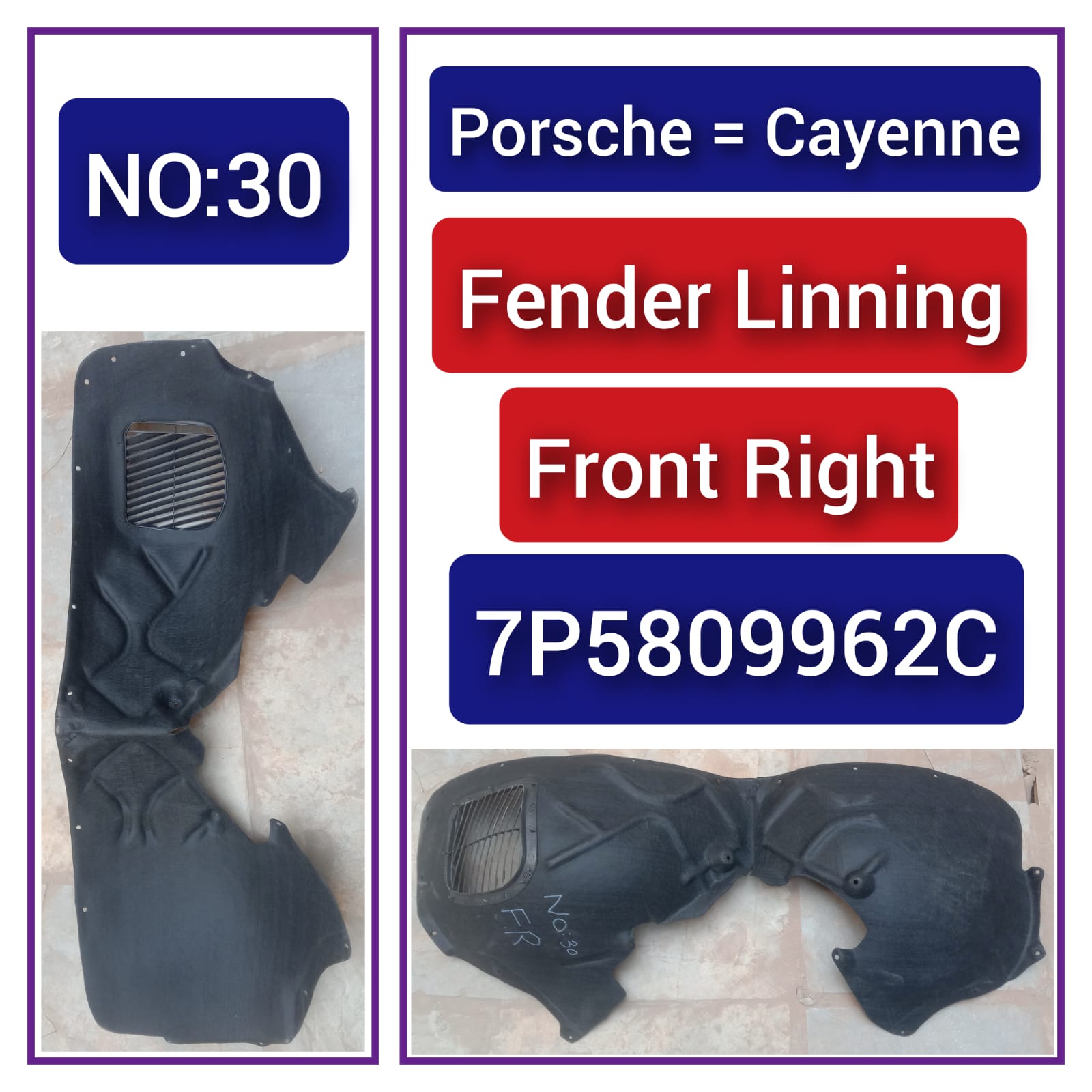 Front Right Fender Liner 95850496201 7P5809962C   Compatible With PORSCHE CAYENNE 958 Tag-FEA-30