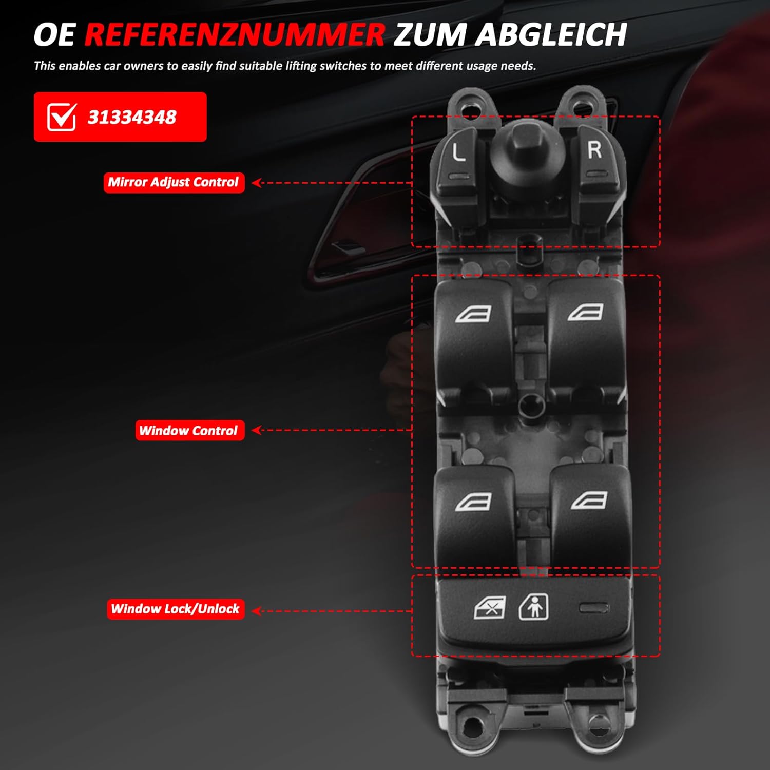 Front Right Power Window Control Switch engineered for Volvo S60 and XC60 vehicles. Replaces OEM part numbers 31272011 and 31334348 with exact factory specifications. This driver-side passenger window switch delivers reliable one-touch operation and integrates seamlessly into your vehicle's door panel assembly. Built to withstand repeated use cycles while maintaining electrical precision. Ideal for addressing window control issues or upgrading worn switches on your Volvo sedan or crossover platform.