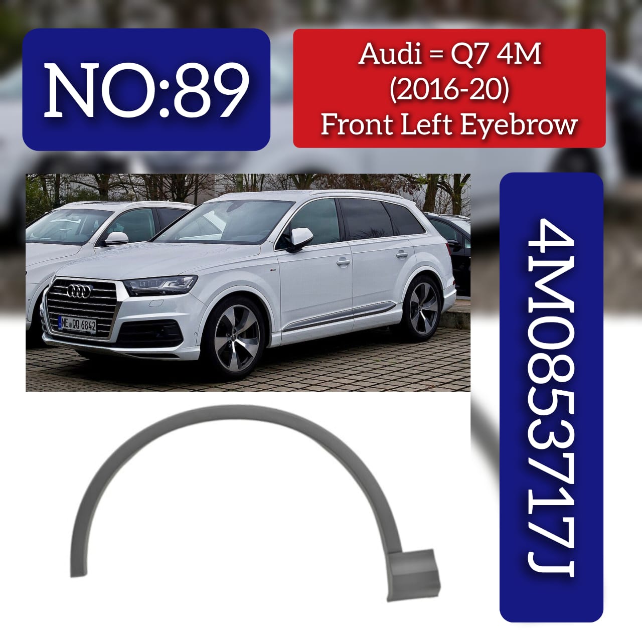 Upgrade your AUDI Q7's exterior with our Front Right Wheel Arch (EYEBROW) 4M0853717J. Made to fit perfectly on models from 2016 to 2020, this arch adds a stylish touch while protecting your wheel from debris. Expertly crafted with durable materials, it's a must-have for any AUDI Q7 owner.