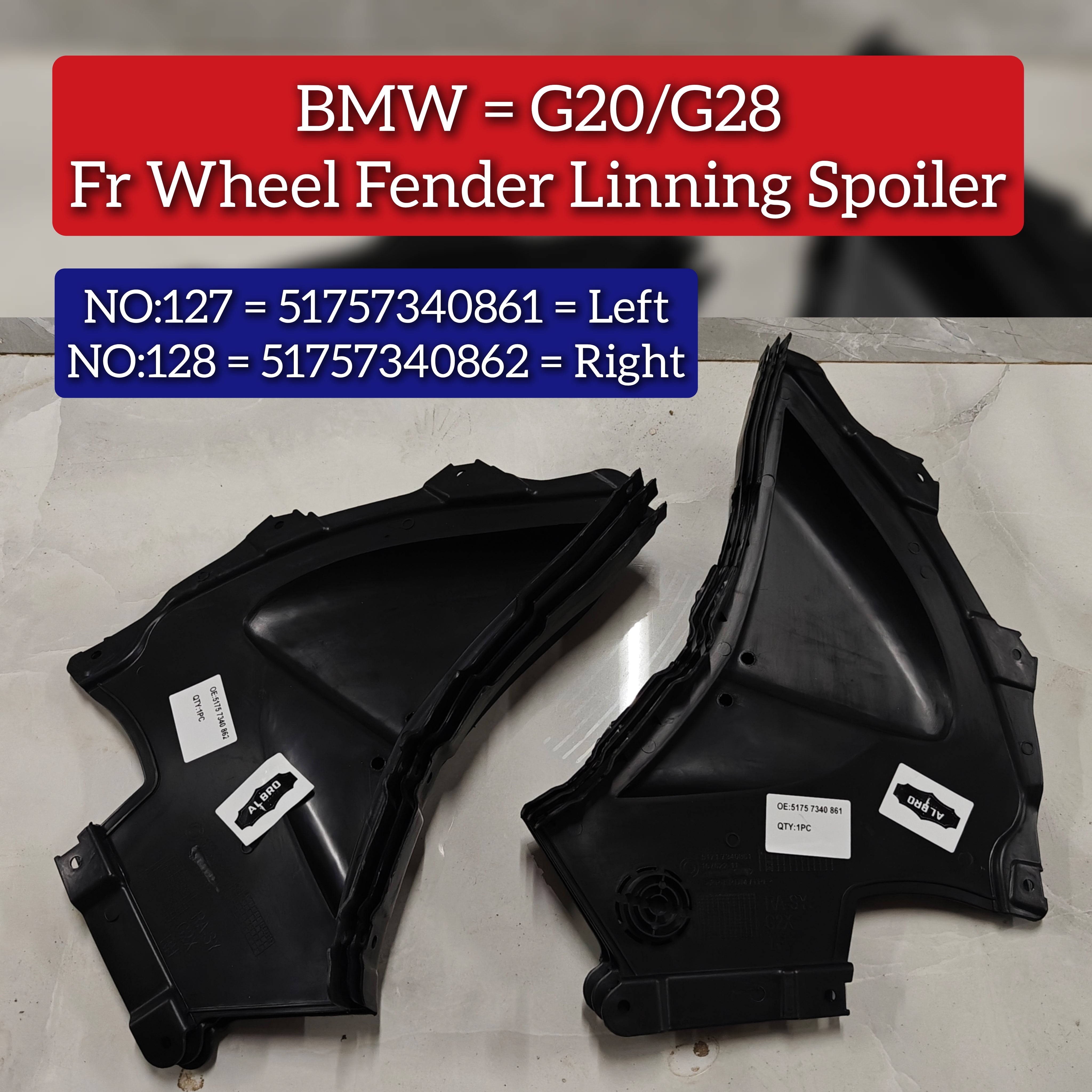 This Front Right Wheel Fender Spoiler (part number 51757340862) is engineered specifically for BMW 3 Series G20 and G28 models. It offers a precise fit that enhances your vehicle’s aerodynamics while maintaining the original design integrity. Manufactured to OEM quality standards, this spoiler provides both durability and a refined, sporty appearance, making it an ideal upgrade for performance-focused BMW owners.