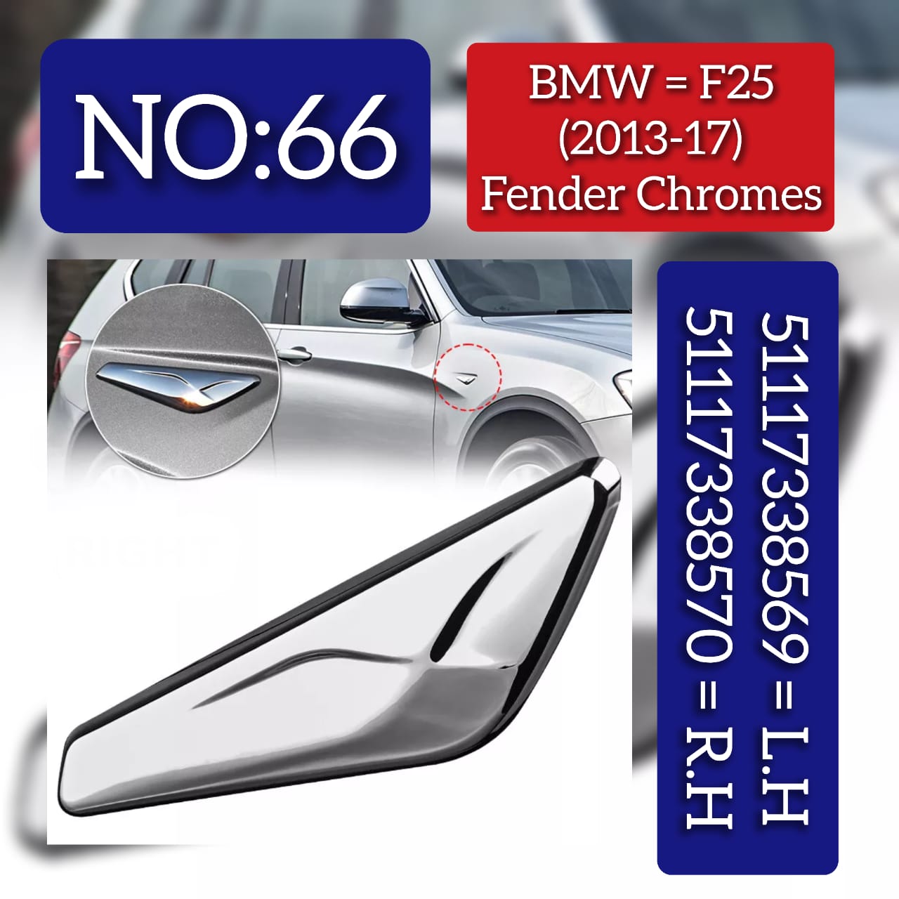 Upgrade your BMW X3 (F25) with our Front Side Fender Trim Chrome! Crafted specifically for your vehicle, this trim adds a touch of sophistication and elegance to your car's exterior. Made with premium materials, it is durable and easy to install. Elevate your car's style and stand out on the road.