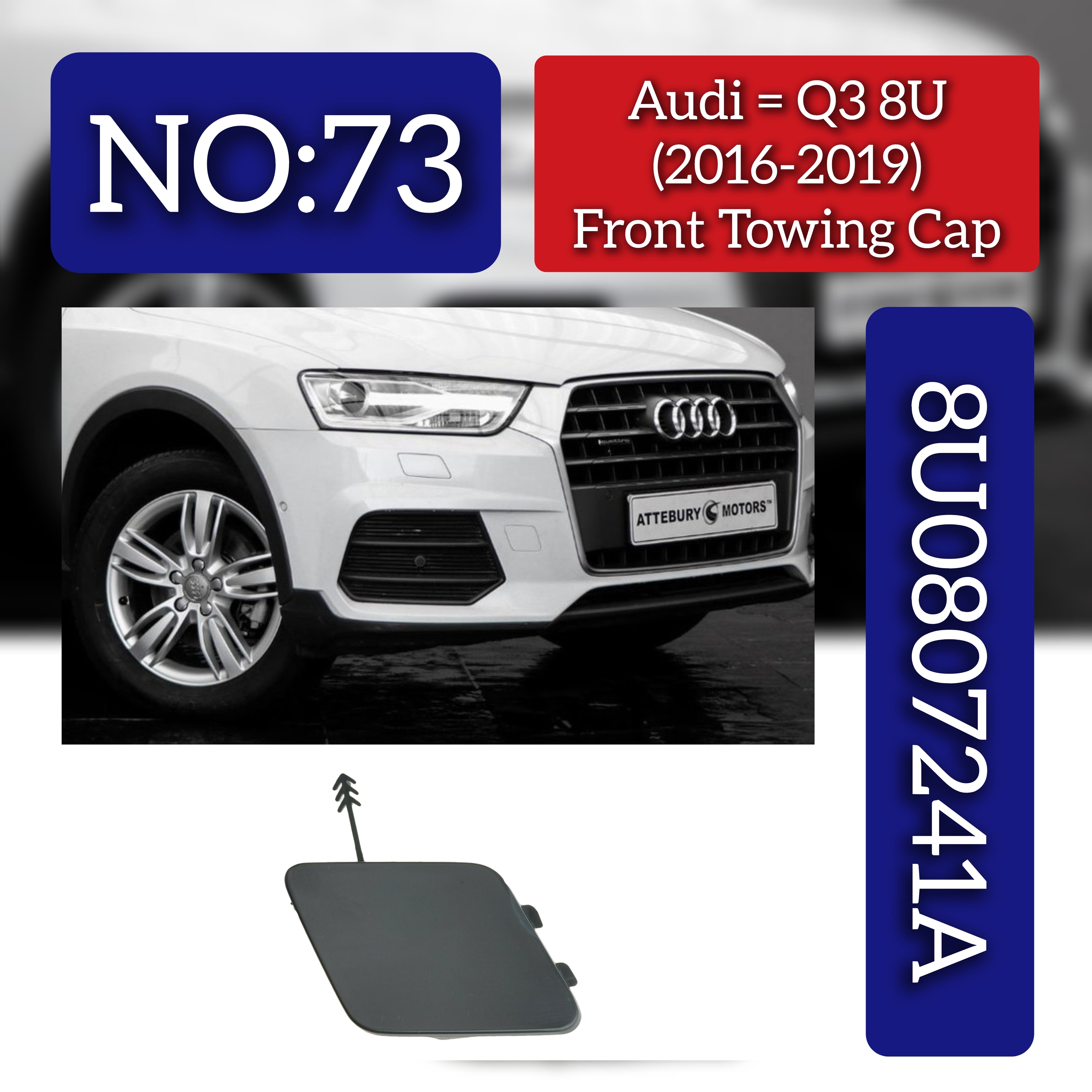 The Front Towing Cap 8U0807241A is engineered for AUDI Q3 models (8UB & 8UG) from 2016 to 2019, providing a precise fit and reliable durability. This component ensures secure towing attachment, preserving the vehicle’s structural integrity during recovery or transport. Its robust design facilitates professional-grade performance and straightforward installation, making it an essential part for maintaining safe and effective towing operations.