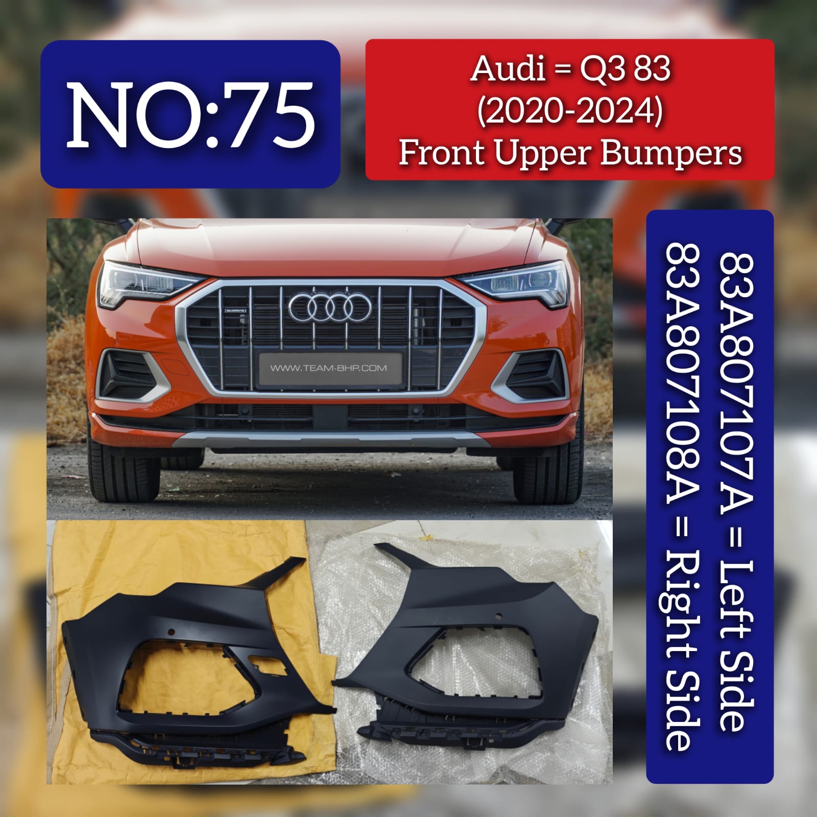 This Front Upper Bumper assembly, featuring parts 83A807107A and 83A807108A, is engineered specifically for the AUDI Q3 models from 2020 to 2024. Designed to fit precisely, it ensures optimal protection and maintains the vehicle’s structural integrity. Its durable construction helps absorb impacts, safeguarding critical front-end components while preserving the car’s aesthetic appeal. Ideal for professional repair or replacement, this bumper assembly supports reliable performance and longevity consistent with OEM standards.