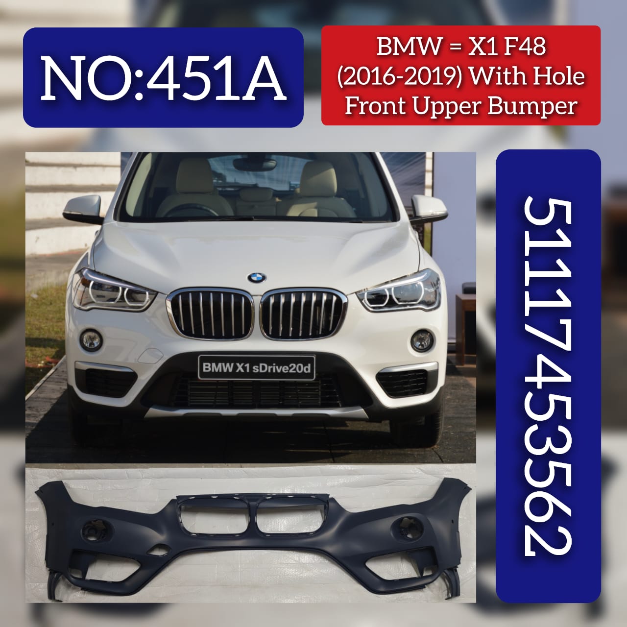 Enhance the look of your BMW X1 F48 (2016-19) with this Front Upper Bumper. Designed to fit seamlessly and with a tag number of 451A, this bumper is compatible with your vehicle. Its sleek design and precise fit will give your car a professional and polished appearance.