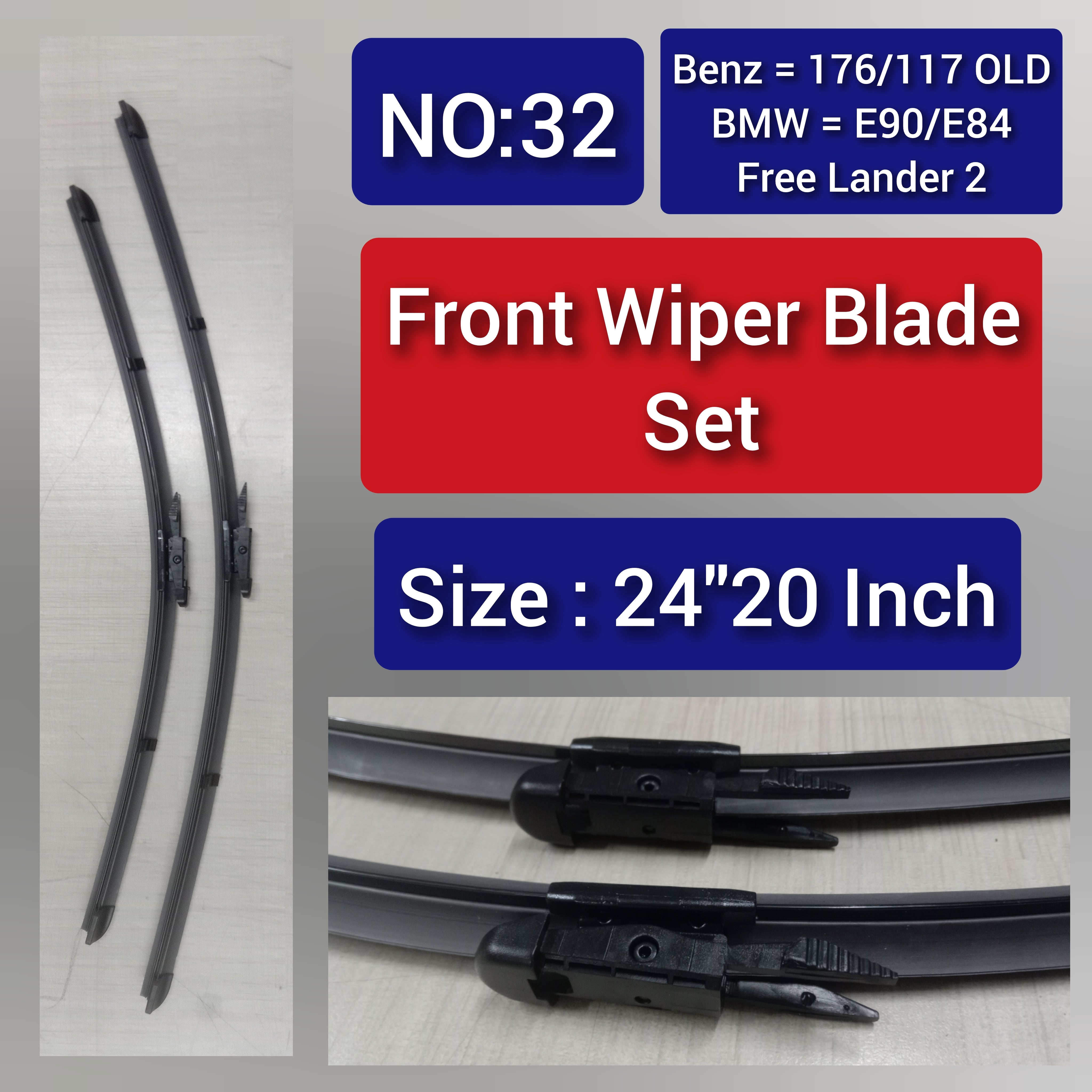 Upgrade your vehicle's wipers with our Front Wiper Blade Set. Designed for Mercedes Benz A-CLASS W176, CLS C117, BMW 3 Series E90, X1 E84, and Land Rover Freelander 2. Enjoy clear and streak-free visibility with our durable and compatible 24'20 inch wiper blades. Drive safely in any weather condition.
