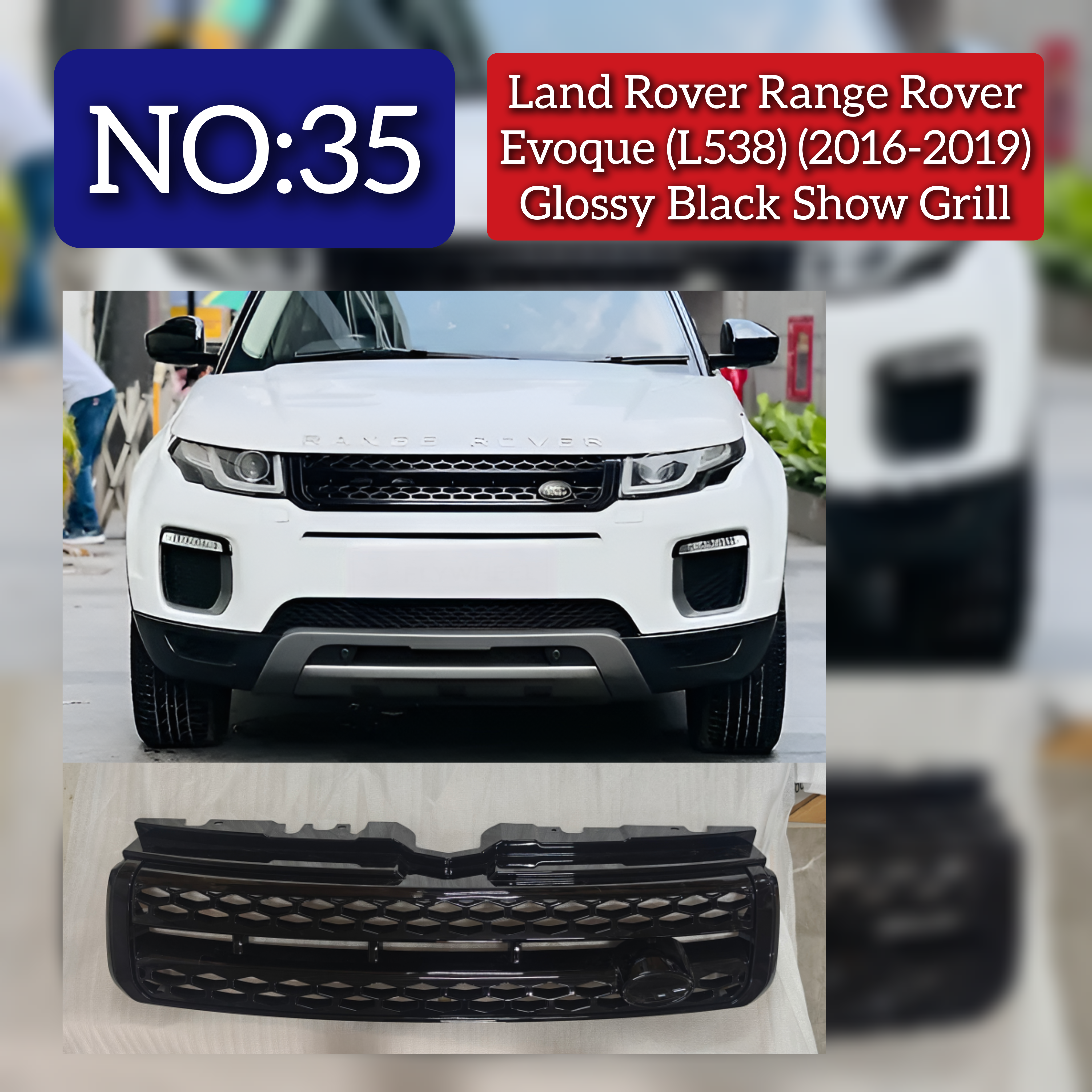 Enhance your Land Rover Range Rover Evoque (L538) from 2016 to 2019 with this Glossy Black Show Grill. Designed for a perfect fit, it offers a sleek, modern look that elevates your vehicle's front-end aesthetics. Its high-gloss finish provides durability and an eye-catching shine, ensuring your Evoque stands out with refined style and lasting quality. Easy to install and built to complement the original design, it’s an expert choice for upgrading your vehicle’s appearance.