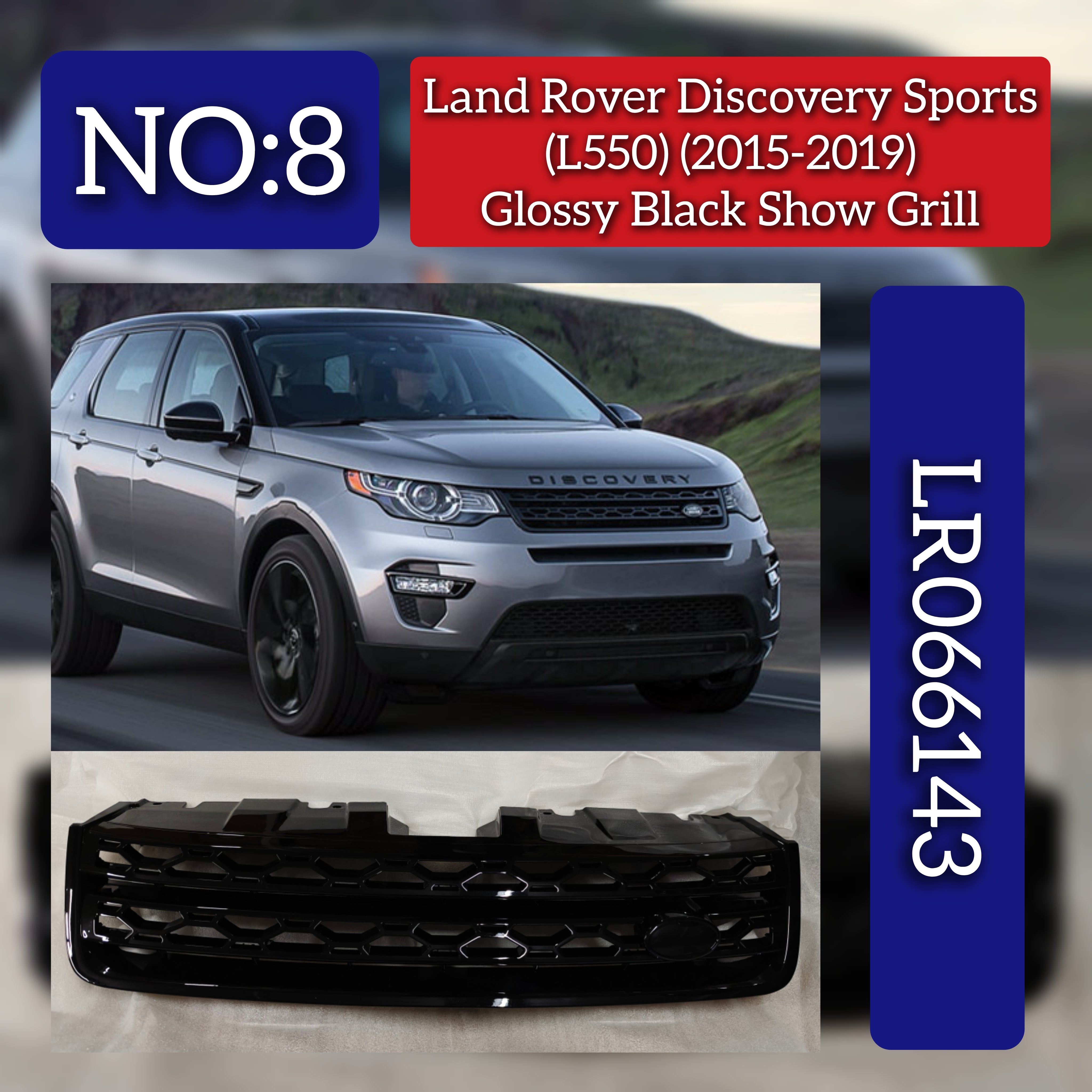 The Glossy Black Show Grill LR066143 is specifically engineered for the Land Rover Discovery Sport (L550) model years 2015 to 2019. This premium replacement grill features a high-gloss black finish that enhances the vehicle’s front aesthetics while ensuring precise fitment and durability. It is an ideal choice for professionals and enthusiasts seeking to maintain the original design integrity with a sleek, modern upgrade.