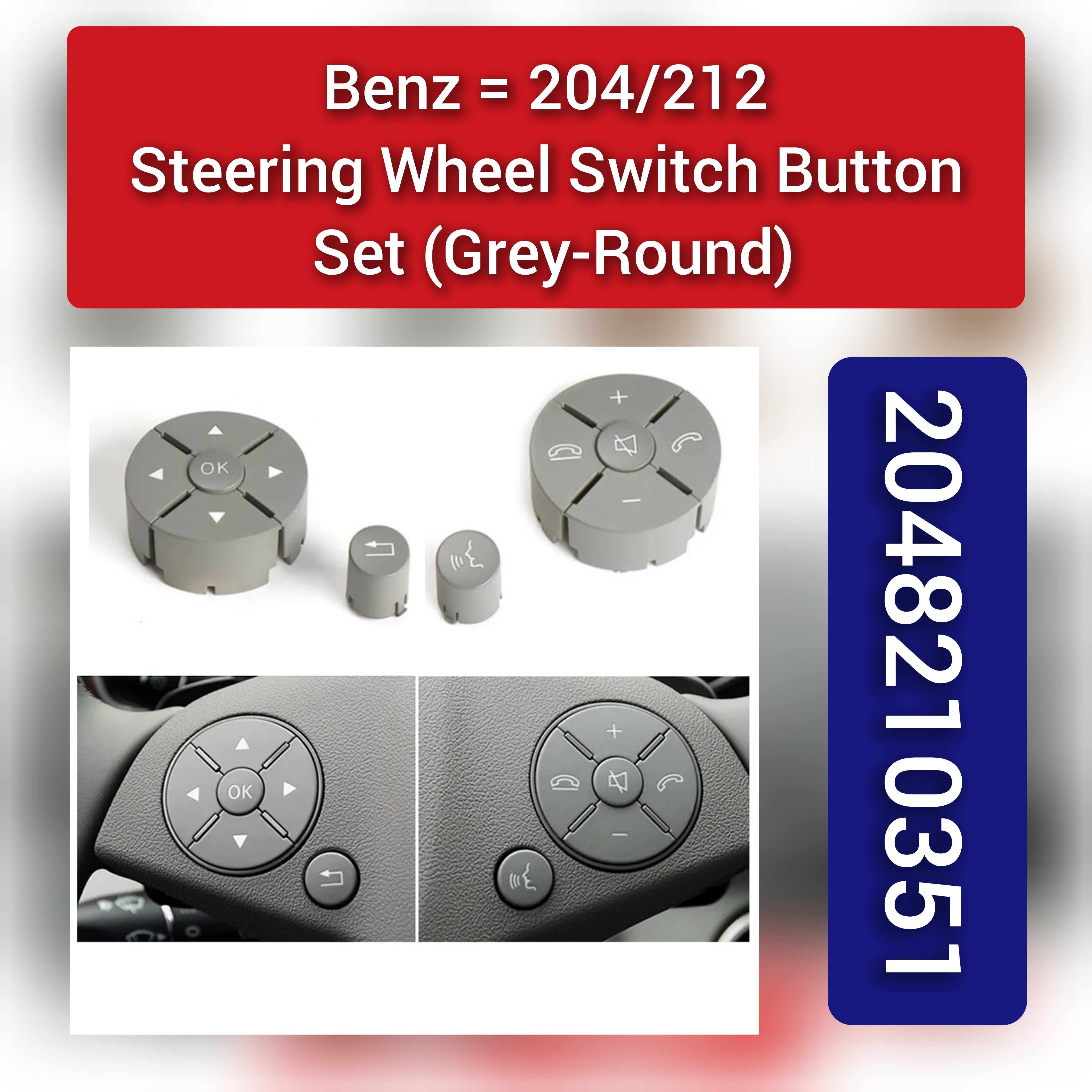 Upgrade your driving experience with these Grey-Round Steering Wheel Switch Control Buttons! Designed specifically for MERCEDES BENZ C-CLASS W204 & E-CLASS W212, these buttons provide convenient access to various functions without taking your hands off the wheel. Enhance your control and safety while driving with this reliable and stylish upgrade.