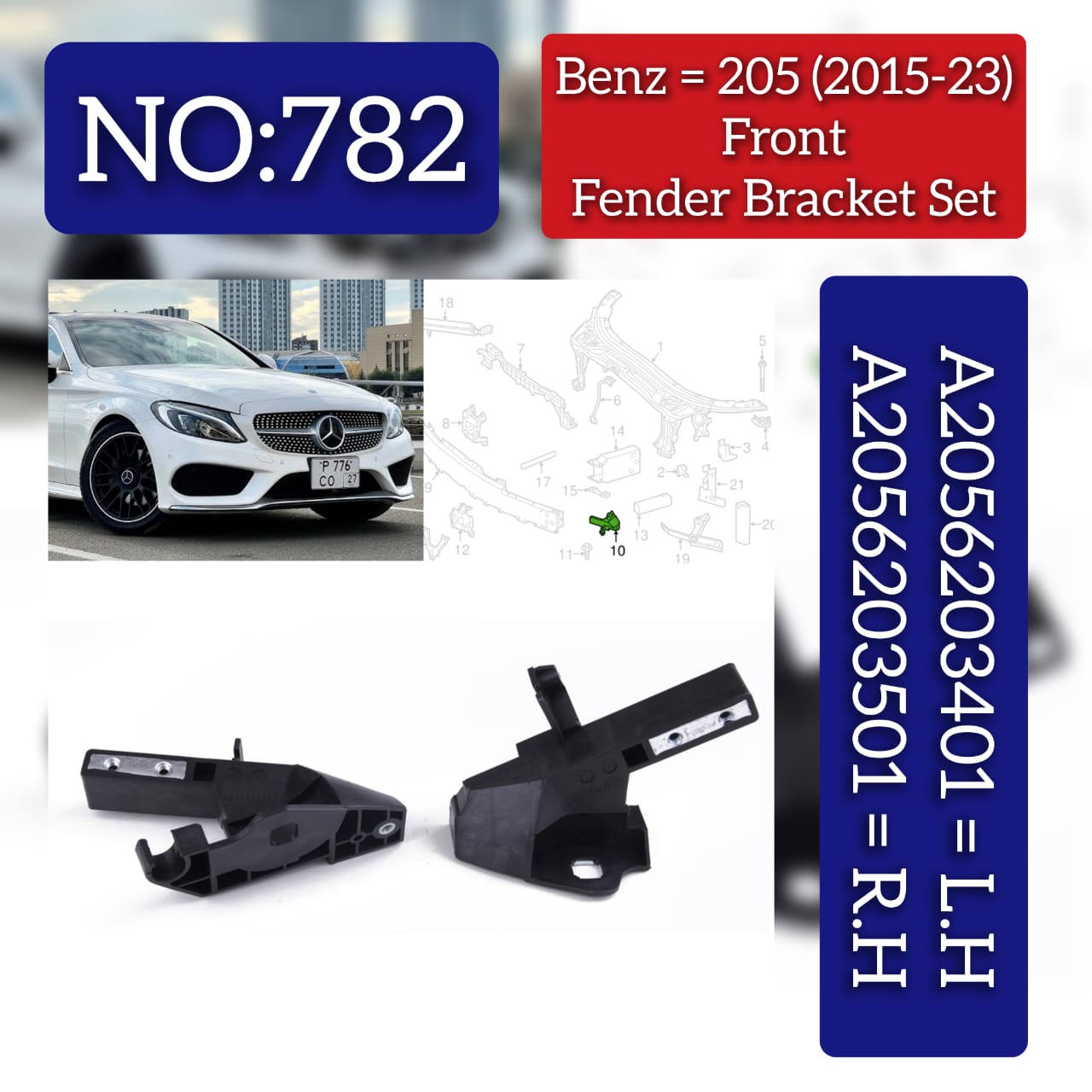 Expertly manufactured Headlight Brackets, designed specifically for MERCEDES-BENZ C-CLASS (W205). These brackets, compatible with both left and right headlights, ensure a secure and precise fit, providing optimal performance and safety for your vehicle. Trust in the quality and reliability of our product.