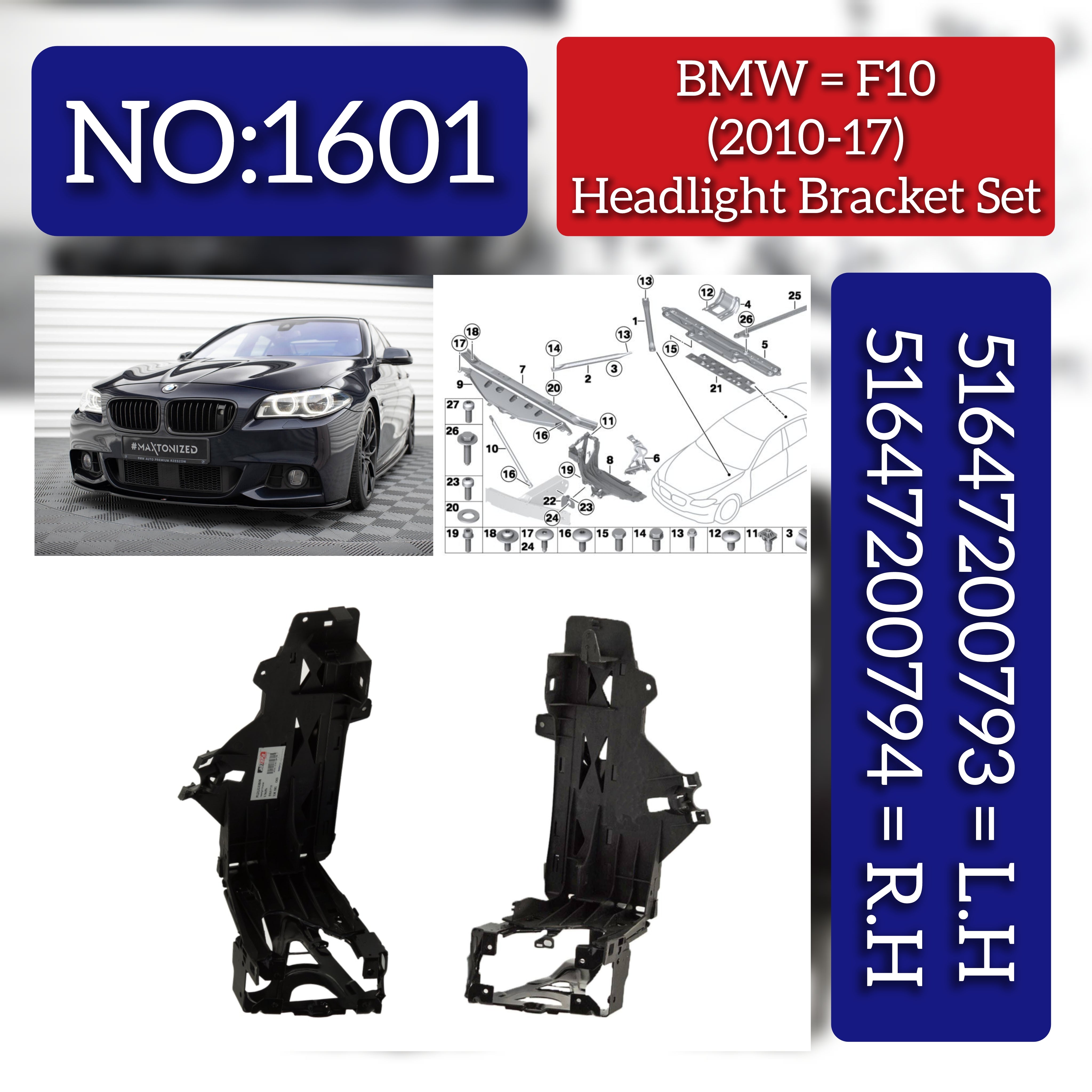 Maximize the performance of your BMW 5 Series (F10) 2010-2017 with these compatible left and right headlight brackets, part numbers 51647200793 and 51647200794. Ensure proper fit and function, enhancing your vehicle's safety and functionality. Trust the industry experts for a seamless installation and reliable performance.