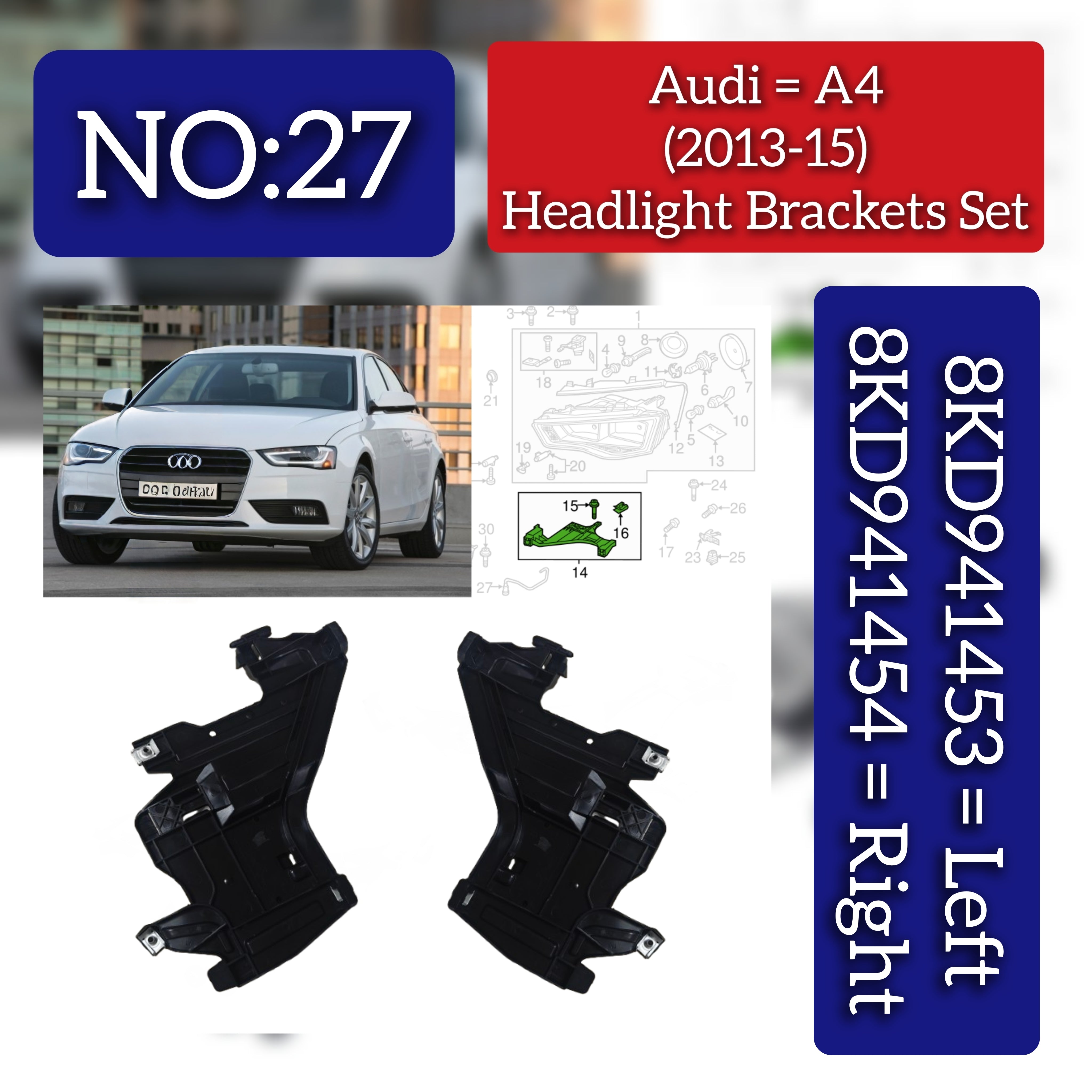 This set includes the left (8KD941453) and right (8KD941454) headlight brackets designed specifically for AUDI A4 models from 2012 to 2015. Engineered to ensure precise fitment and secure mounting, these brackets maintain proper headlight alignment, contributing to optimal lighting performance and vehicle safety. Manufactured to meet OEM standards, they provide reliable durability and compatibility, making them an essential replacement part for maintaining your AUDI A4’s front-end integrity.