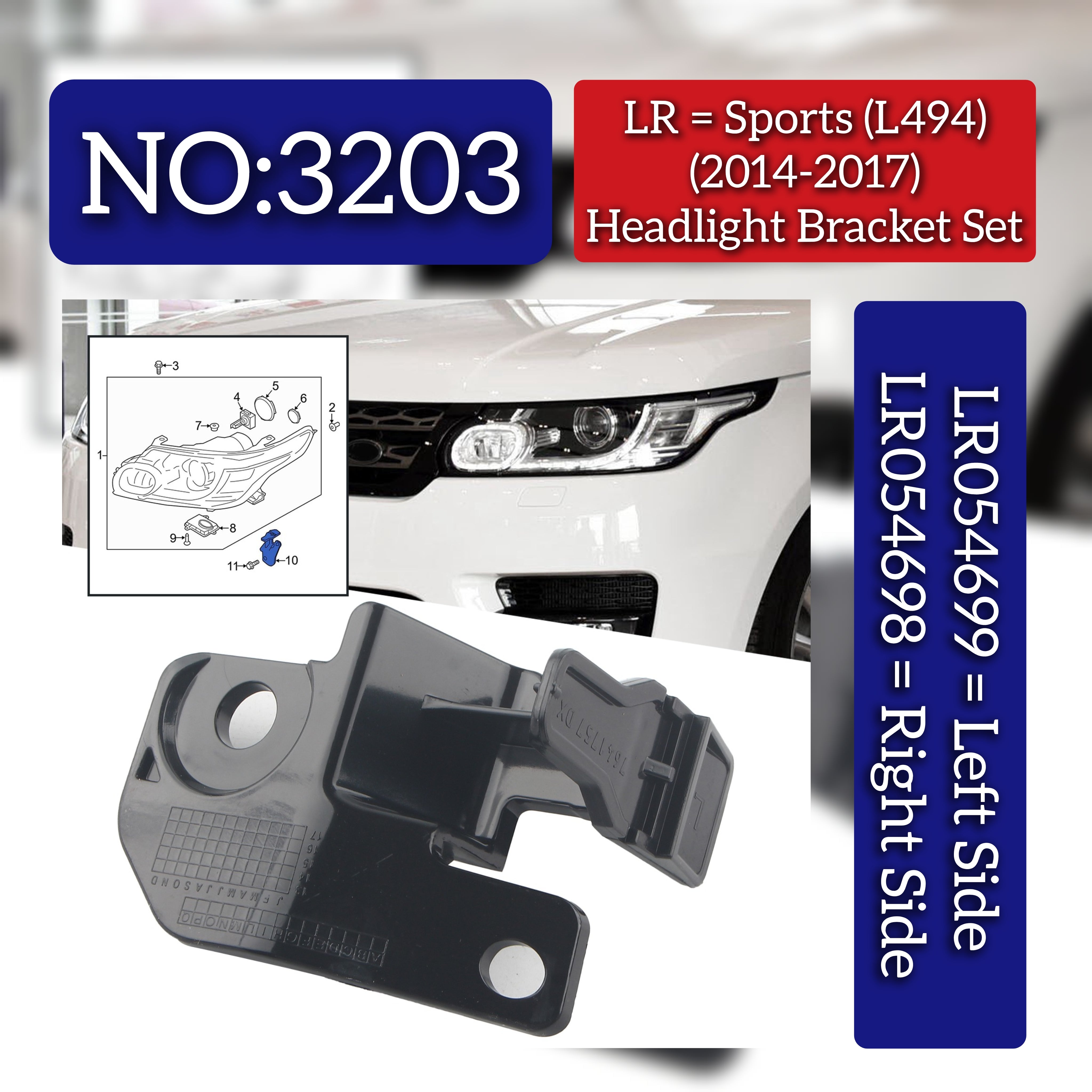 This Headlight Bracket Set features right (LR054698) and left (LR054699) brackets specifically designed for Land Rover Range Rover Sport L494 models from 2014 to 2017. Manufactured to exact specifications, these brackets provide secure and stable mounting for headlights, ensuring optimal alignment and durability. Suitable for professional installation, they help maintain the integrity of your vehicle’s lighting system, contributing to enhanced visibility and safety on the road. This set is an essential component for effective headlight repair or replacement on your Range Rover Sport.