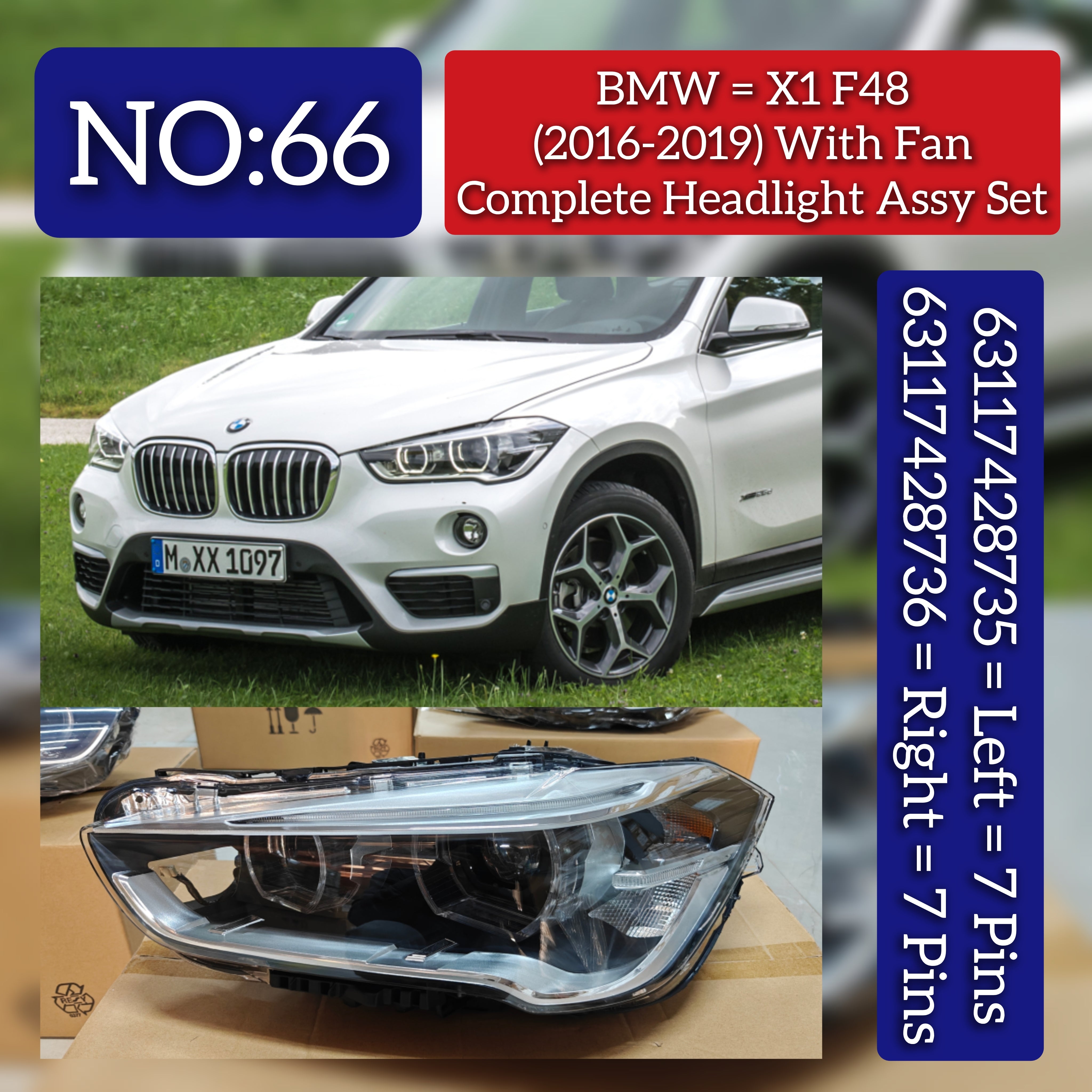 This set includes left (63117428735) and right (63117428736) headlamp assemblies for BMW X1 F48 models from 2016 to 2019. Featuring 7-pin connectors and projector-style lighting without blaster functionality, these headlights ensure precise beam focus and reliable illumination. Designed for seamless replacement, they maintain original fit and performance, enhancing night driving safety and vehicle aesthetics. Ideal for professional repairs and upgrades on your BMW X1.