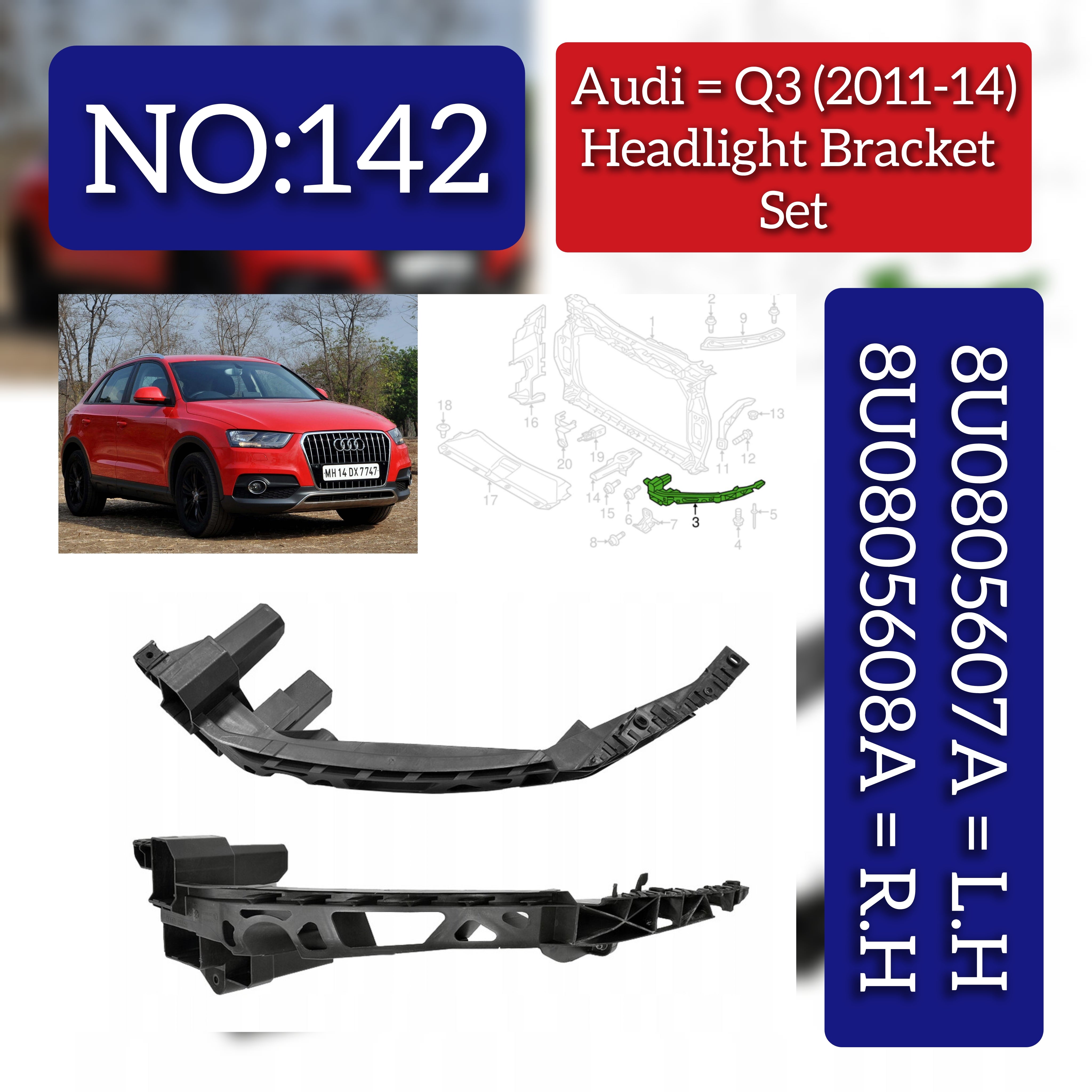 The Headlight Lamp Bracket Left 8U0805607A & Right 8U0805608A is designed for compatibility with AUDI Q3 (model 8UB and 8UG). Made from high-quality material, these brackets provide secure and precise positioning for the headlights, ensuring maximum visibility and safety while driving. Trust in these brackets for a reliable and long-lasting solution to your headlight needs.
