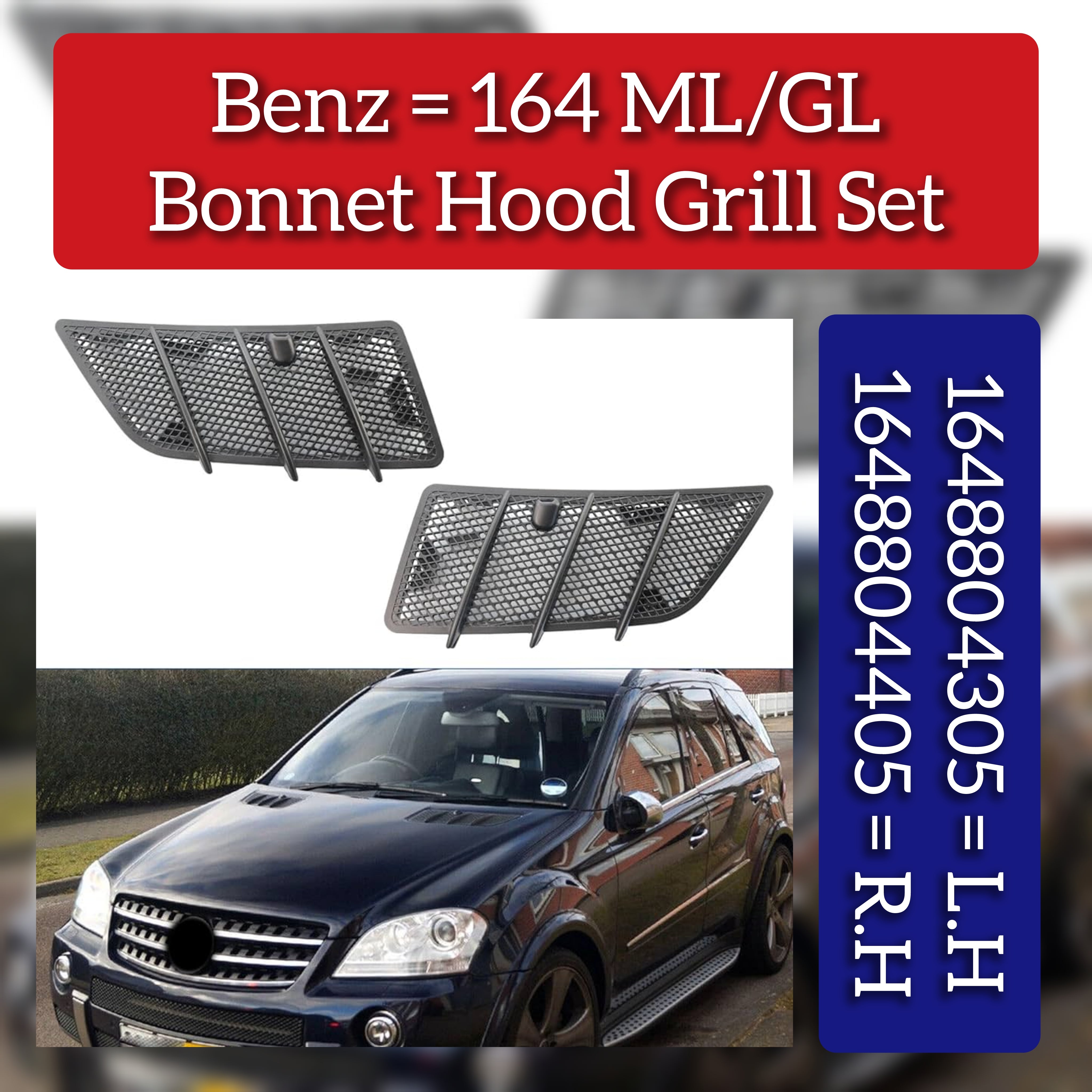 Upgrade your MERCEDES BENZ M-CLASS W164 & GL-CLASS W164 with our Hood Air Vent Grille Cover Set. Designed for a perfect fit, these covers (part numbers 1648804305 and 1648804405) are compatible with the left and right side of your vehicle. Add a sleek and stylish touch to your Mercedes while improving air flow.