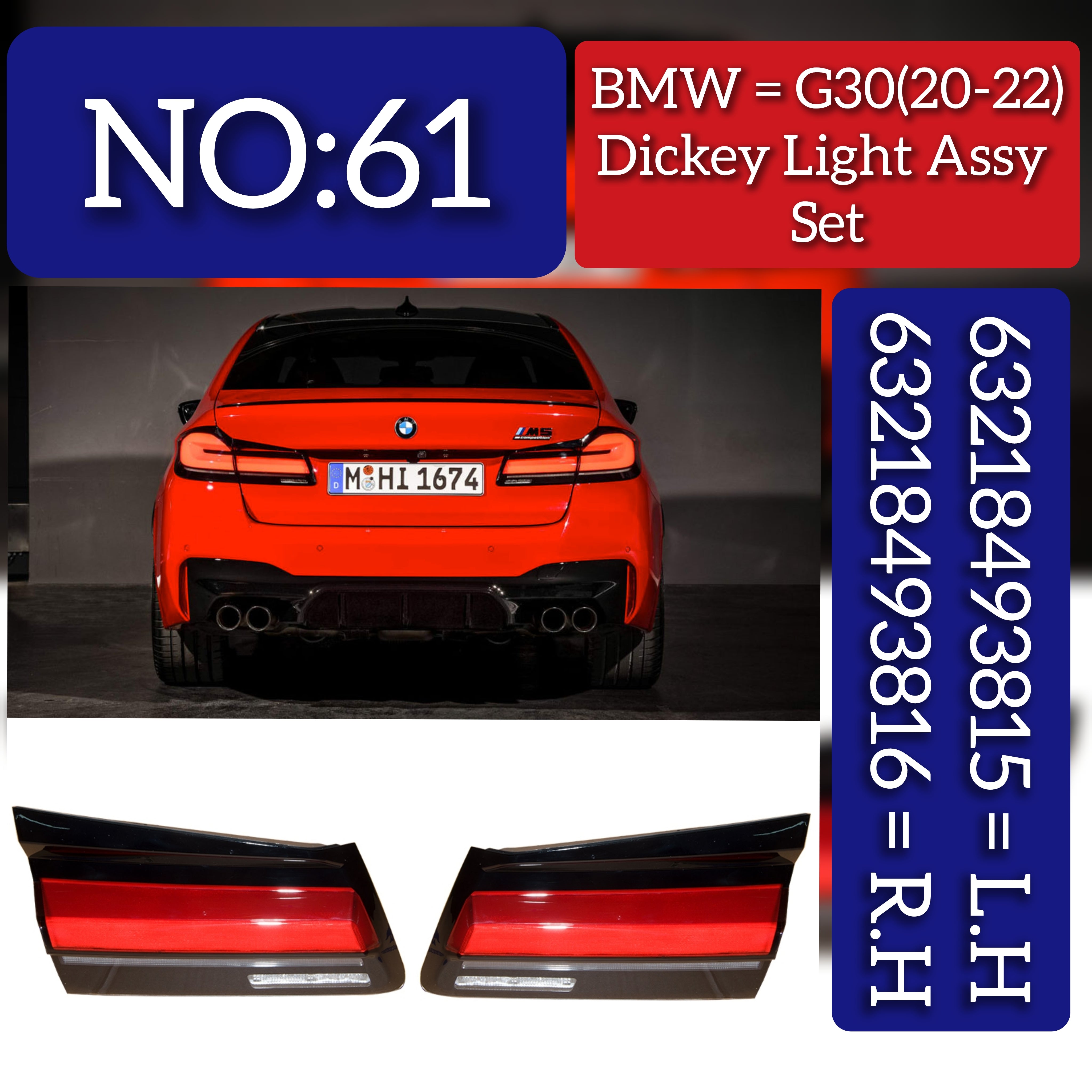 Enhance the safety and style of your BMW 5 Series G30 with our Inner Tail Light Rear Lamps. With a sleek design and compatibility with both left and right sides, your vehicle will be equipped with the latest in rear lighting. Upgrade now for a safer and more visually appealing driving experience.