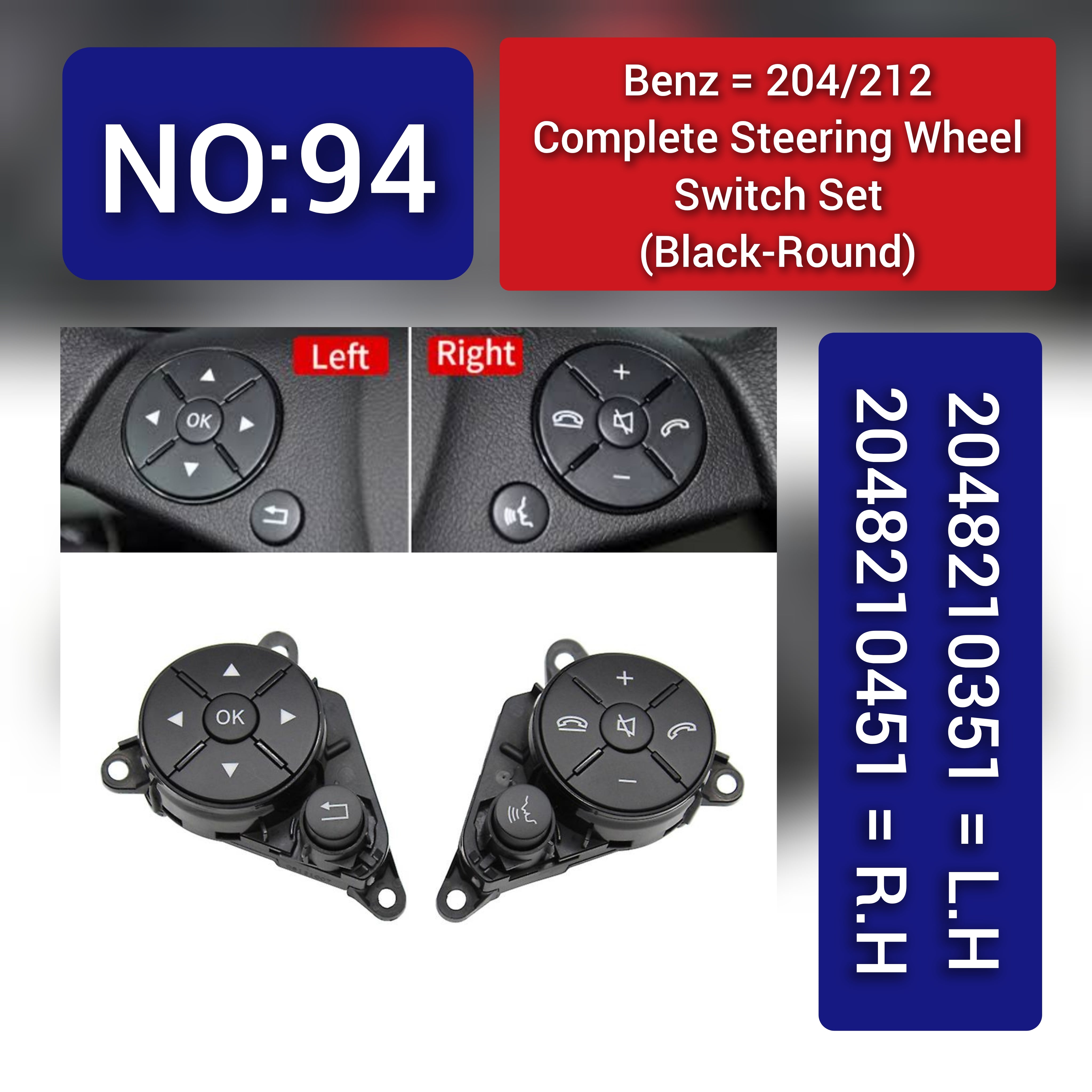 For the Mercedes-Benz 204/212 Complete Steering Wheel Switch Set (Black-Round) -