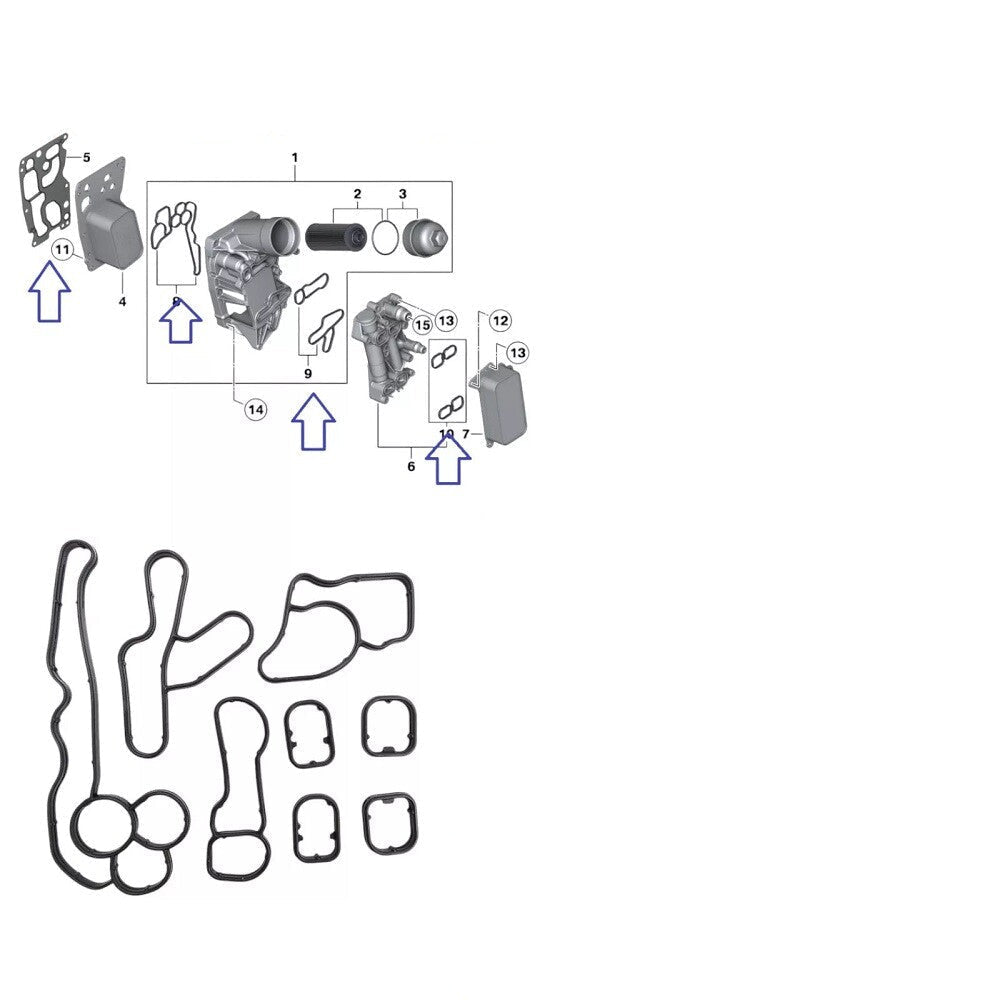 This set of eight oil cooler packings is engineered specifically for BMW X5 (F15, F85), 6-Series Coupe (F13), and 6-Series Gran Coupe (F06) models. Designed to meet exact OEM specifications (part numbers 367.500, 367.280, 367.370, 11428511980), these packings provide a secure seal crucial for maintaining efficient oil cooling and preventing leaks. Ideal for professional installation, they ensure optimal engine performance and durability by preserving the integrity of the oil cooler assembly.