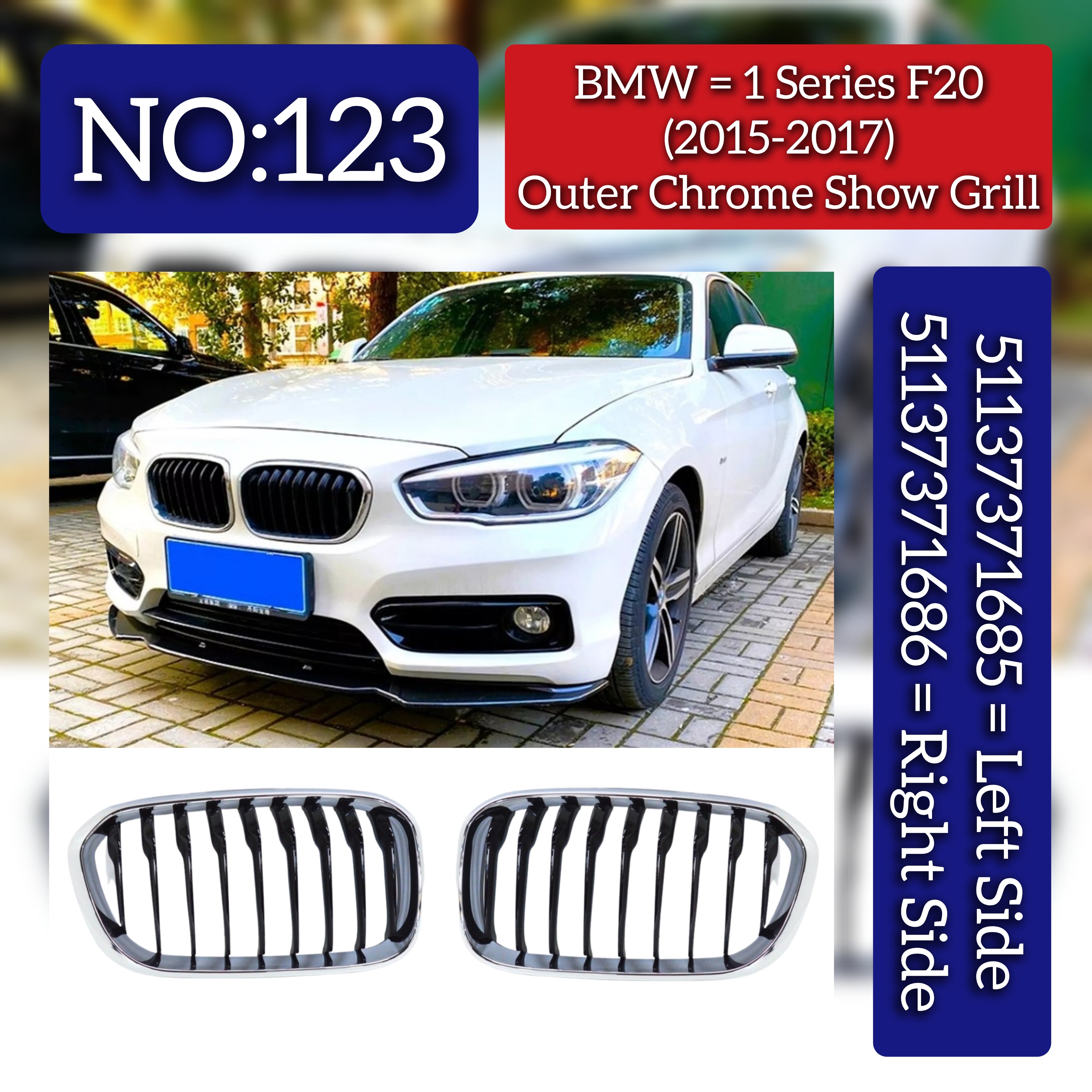 Enhance the front aesthetics of your BMW 1 Series (F20) from 2015 to 2017 with this high-quality Outer Chrome Show Grill set, featuring left (51137371685) and right (51137371686) parts. Engineered to meet OEM standards, these chrome grills offer a flawless fit that maintains your vehicle’s original airflow dynamics. Constructed with durable materials, they provide long-lasting resistance against corrosion and wear, ensuring your car retains its premium look while benefiting from reliable performance. Ideal for professional replacements or precise upgrades.