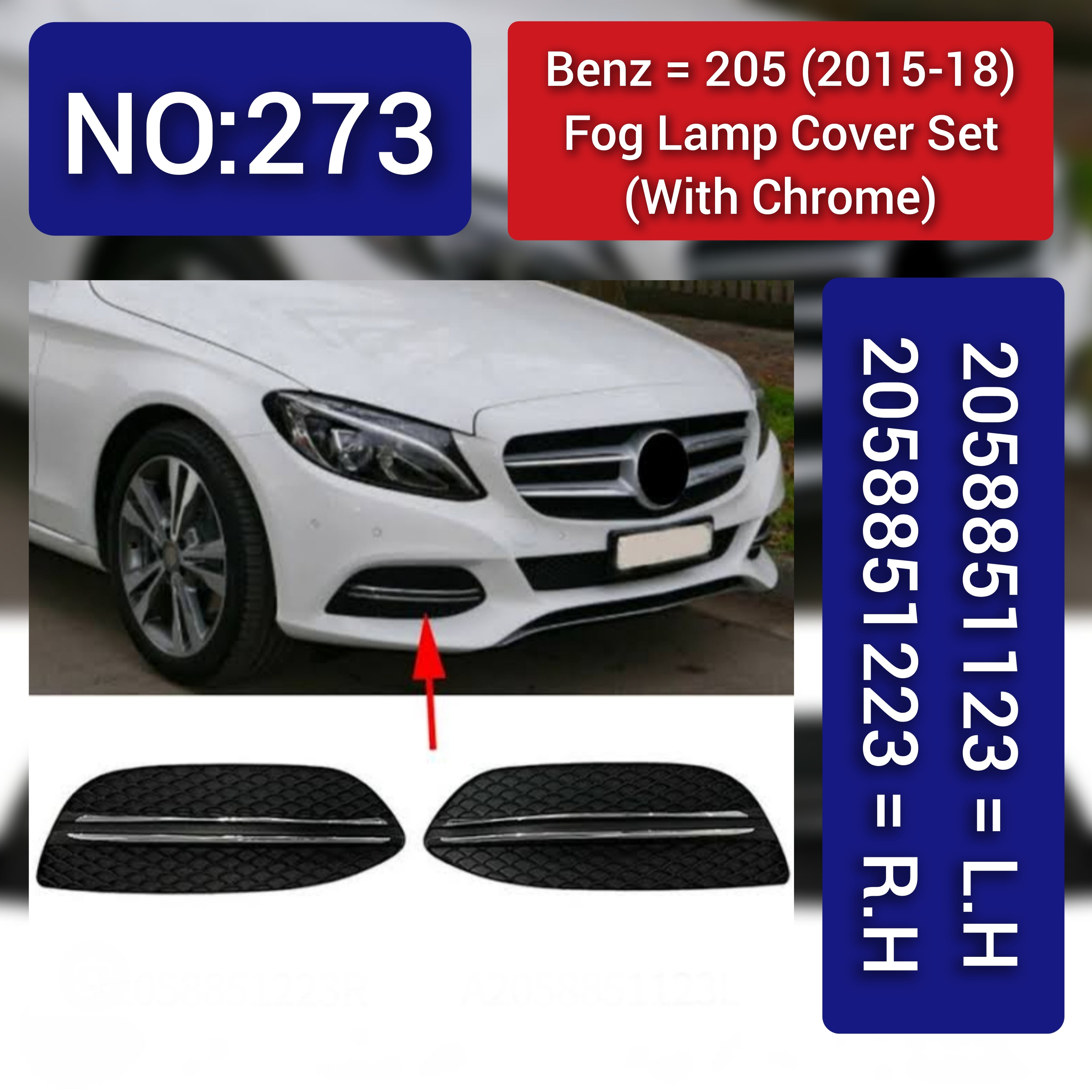 Outer Grille Fog Lamp Cover With Chrome Compatible With MERCEDES-BENZ C-CLASS W205 2015-2018 Fog Lamp Cover With Chrome Left 2058851123 & Right 2058851223