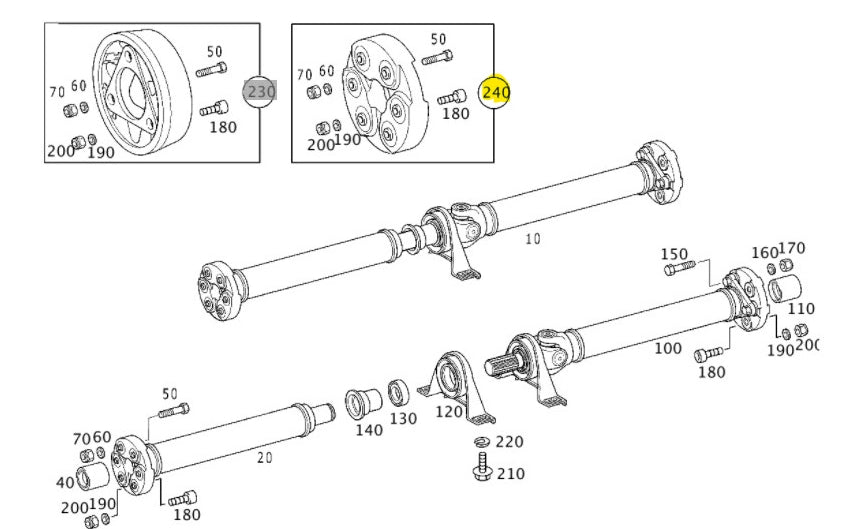 This Prop Shaft Mount, compatible with Mercedes-Benz C-Class (W203), E-Class (W210), and GLE (W166), ensures secure and stable connection of the propeller shaft. Designed to meet OEM standards with part numbers 1704100115, 2024101815, and 2104101215, it provides reliable vibration dampening and supports drivetrain alignment, enhancing vehicle performance and longevity. Ideal for professional repairs and maintenance, this mount delivers durability and precise fitment for your Mercedes-Benz models.