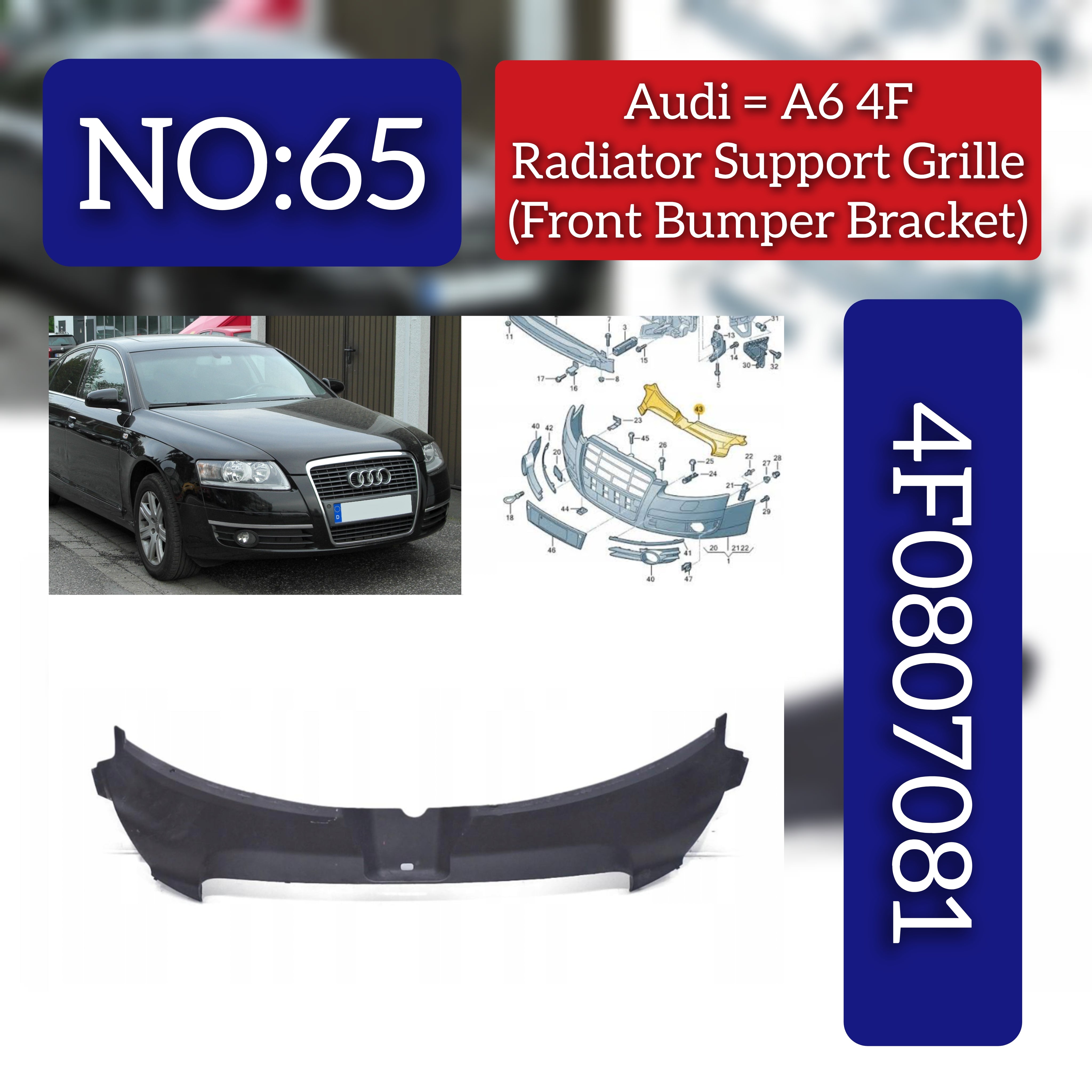 This Radiator Support Grille is designed for the AUDI A6 4F, specifically the 4F0807081 model. It provides a secure and sturdy support for your vehicle's front bumper, ensuring optimal protection and functionality. Made with quality materials for durability and compatibility, it is a must-have for any car enthusiast.