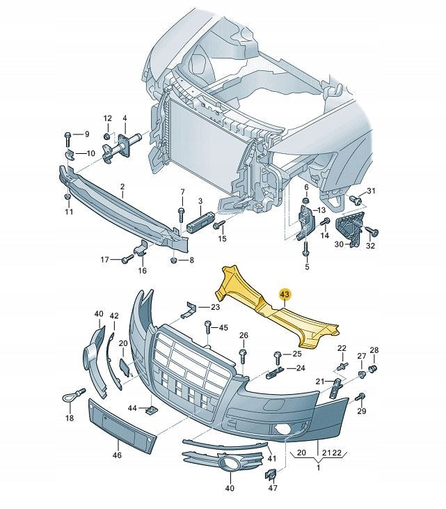 Upgrade the appearance and functionality of your AUDI A6 4F with this high-quality Radiator Support Grille. Made with durable materials, this grille provides excellent protection and improved airflow to your radiator. Enjoy a sleek, stylish look and improved performance with this compatible front bumper bracket.