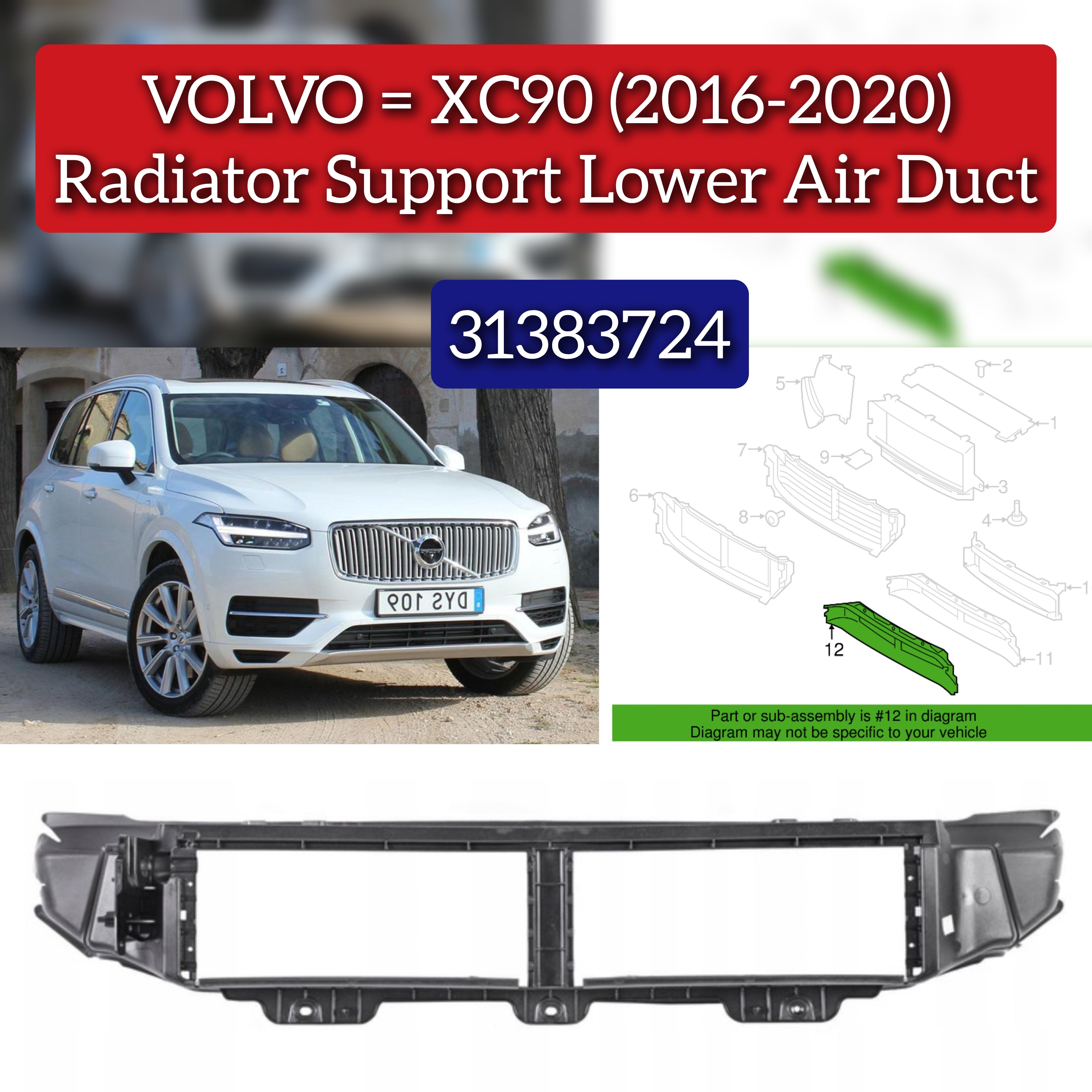 Designed specifically for Volvo XC90 models from 2016 to 2020, the Radiator Support Lower Air Duct 31383724 ensures optimal airflow to the radiator, enhancing engine cooling efficiency. Crafted to fit precisely, it provides reliable support and protection for your vehicle’s cooling system. This durable component helps maintain engine performance and prevents overheating by directing air effectively, making it an essential replacement part for maintaining your Volvo XC90's reliability.