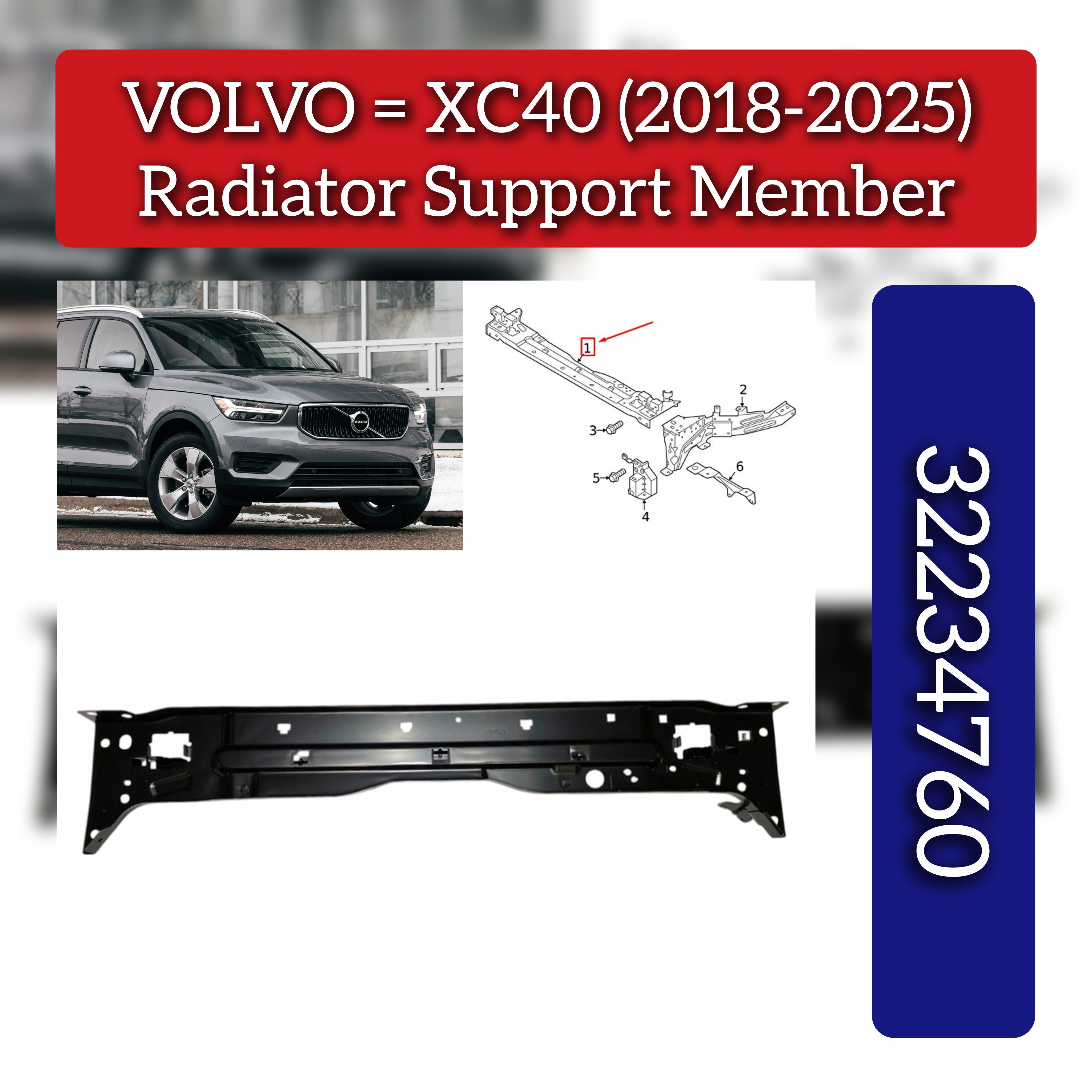 The Radiator Support Member 32234760 is designed specifically for VOLVO XC40 models from 2018 to 2025. This durable component ensures the radiator remains securely in place, maintaining optimal cooling system alignment and vehicle stability. Manufactured to meet OEM specifications, it provides reliable support to withstand vibration and impact, contributing to the overall safety and performance of your VOLVO XC40. Ideal for professional repairs and replacements, this part helps preserve the structural integrity of your vehicle's front end.