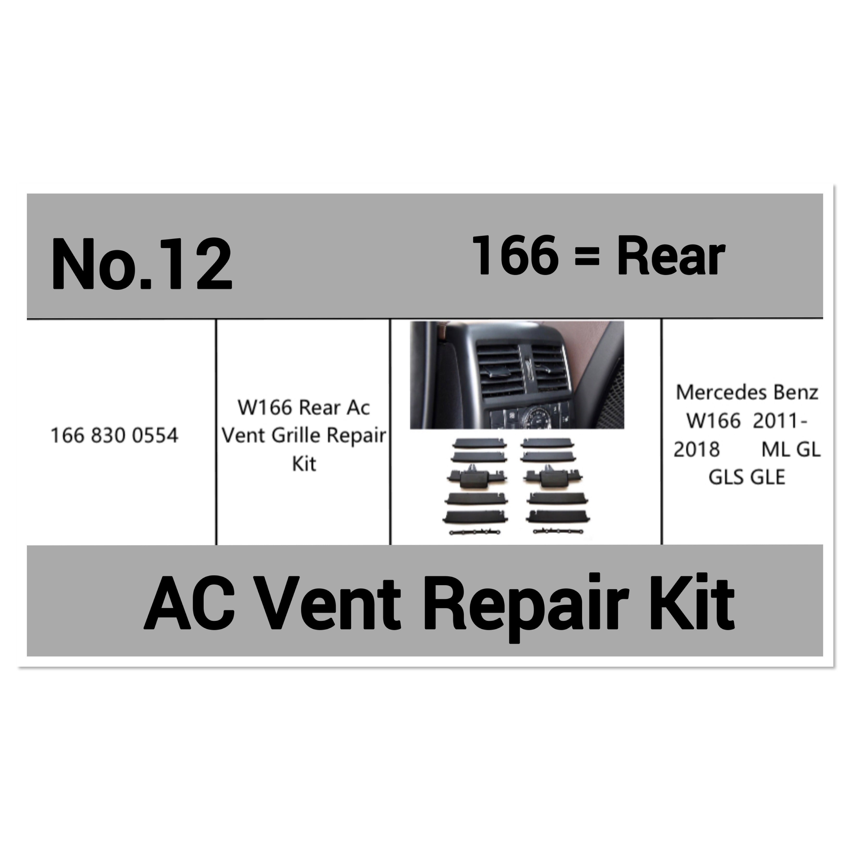 Repair your rear AC vents with ease using the Rear AC Conditioner Air Vent Grill Outlet Tab Clip Repair Kit. Compatible with MERCEDES BENZ GLE W166 & GLS W166 & GL-CLASS W166 & M-CLASS W166, this kit ensures a perfect fit and easy installation for optimal AC performance. Keep your vehicle cool and comfortable with this high-quality repair kit.