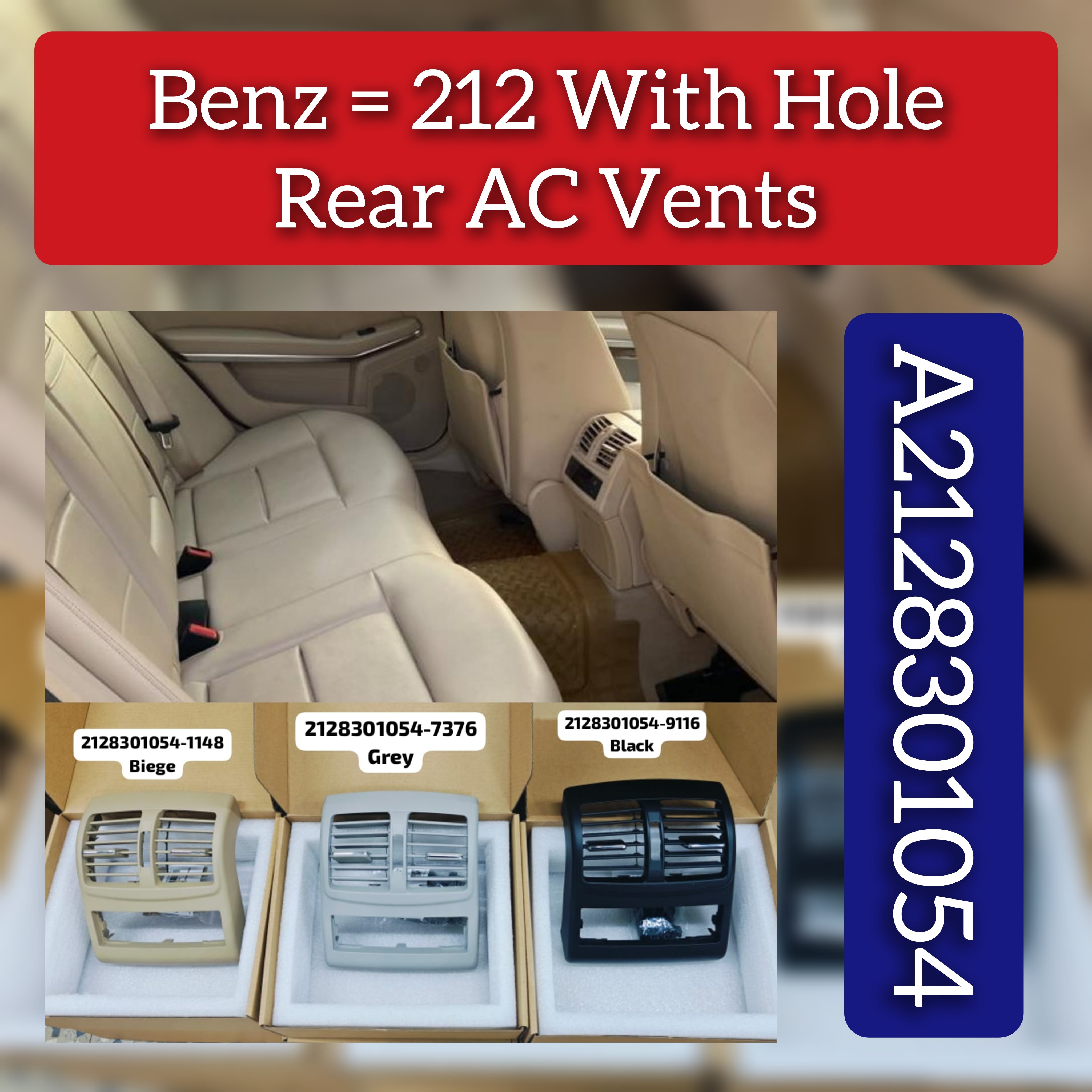 Rear AC Vent Grille with hole for Mercedes Benz E-Class W212 supports optimal ventilation maintaining premium cabin environment very effectively somehow inside vehicle. Grille designed specifically for E-Class W212 fits precisely and integrates seamlessly with various OEM numbers including 2128301054 and others like 2128301054-9116. Its design cleverly facilitates even airflow distribution providing rear-seat passengers consistent comfort blissfully unperturbed by wildly fluctuating outside temperatures. Vent grilles wear out or get badly damaged over time leading to pretty significantly reduced airflow and dubious aesthetics. Swapping out the fake piece for a bona fide replacement restores functionality and brings back that sleek Mercedes Benz interior vibe. Presence of a hole in grille offers enhanced ventilation control thereby significantly contributing to effective HVAC system functionality quite remarkably. This grille is made from remarkably resilient materials and stays looking pretty sharp over rather long periods of time. Rear AC Vent Grille with Hole is vital for preserving comfort efficiency and style in Mercedes Benz E-Class W212 during every long journey.