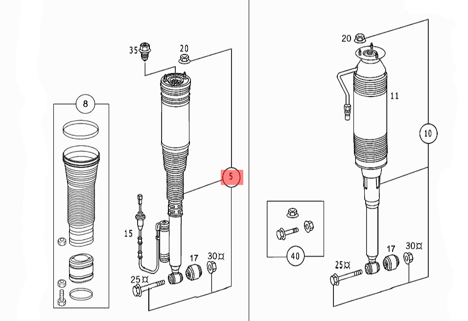Increase the comfort and stability of your MERCEDES-BENZ S-CLASS W220 with our Rear Air Suspension Shock Absorber Strut 2203205013. Designed for a perfect fit, this shock absorber provides superior performance and reliable support to your vehicle's suspension system. Enjoy a smoother ride and improved handling with this top-quality component.