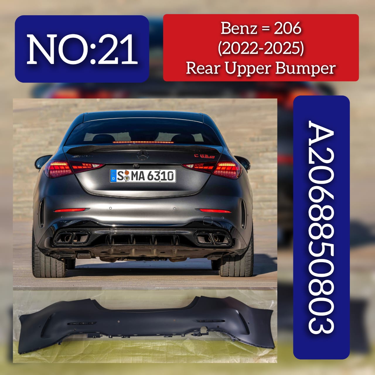 Upgrade your car's appearance and protection with our Rear Bumper A2068850803. Made specifically for Mercedes Benz & C CLASS W206 2021 Tag No, it guarantees a perfect fit and maximum durability. With its sleek design and high-quality materials, this bumper will elevate your driving experience.