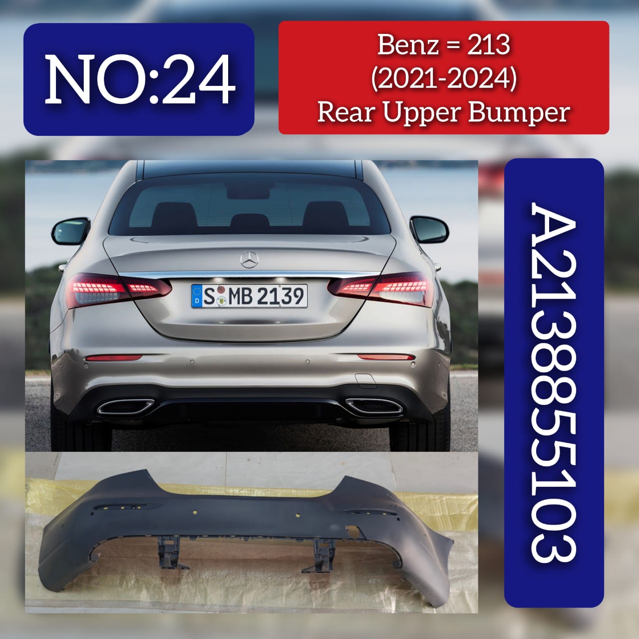 This rear bumper is compatible with MERCEDES-BENZ and E-CLASS (W213) models and has a tag number of 24. Made with high-quality materials, it provides durability and protection for your vehicle. Upgrade your car's appearance and safety with this easy-to-install bumper.