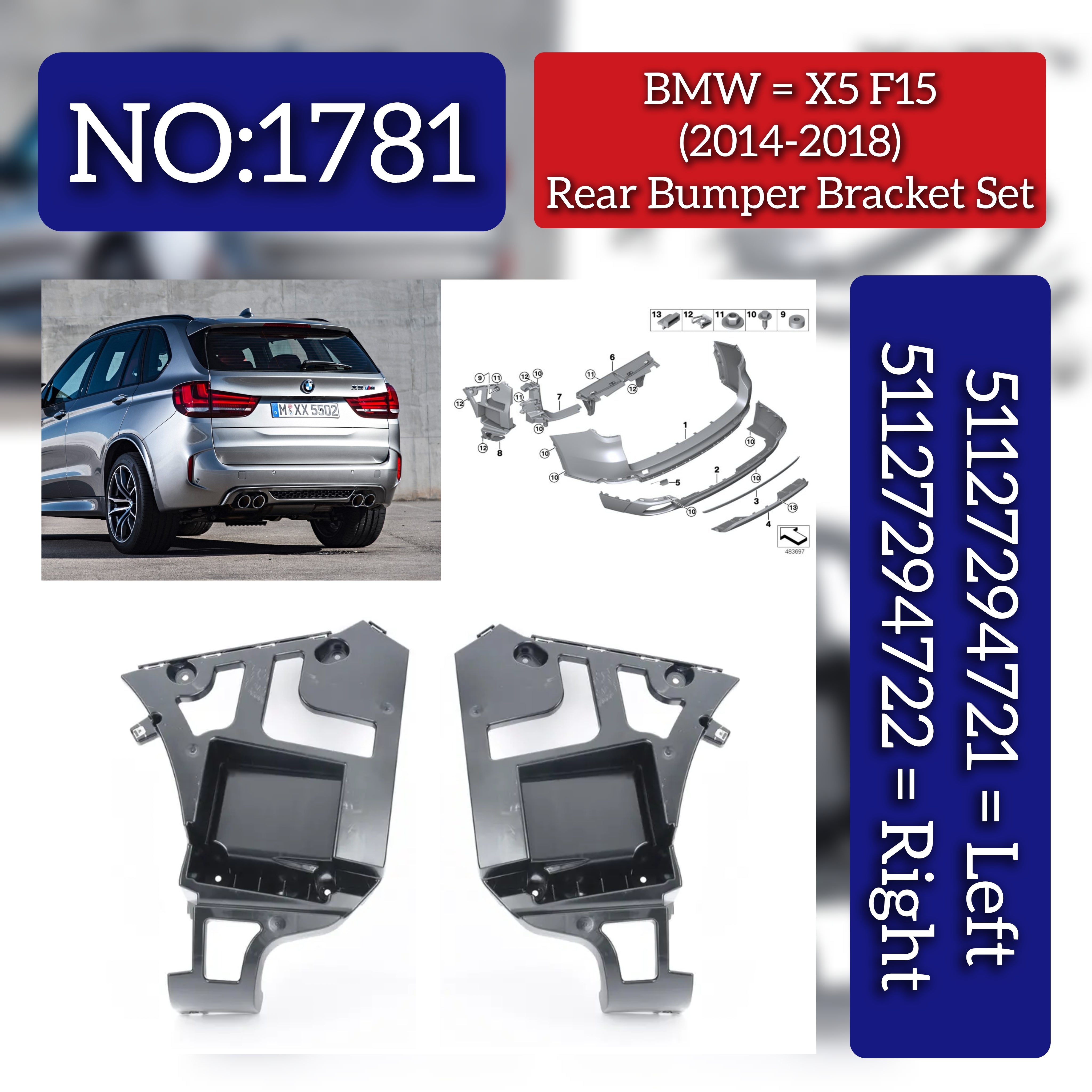 Precision-engineered rear bumper brackets for BMW X5 F15 models. This set includes both left (5112794721) and right (5112794722) big brackets, ensuring proper fitment and structural integrity. Manufactured to OEM specifications for seamless installation and long-lasting performance. Essential components for bumper repair or replacement projects.