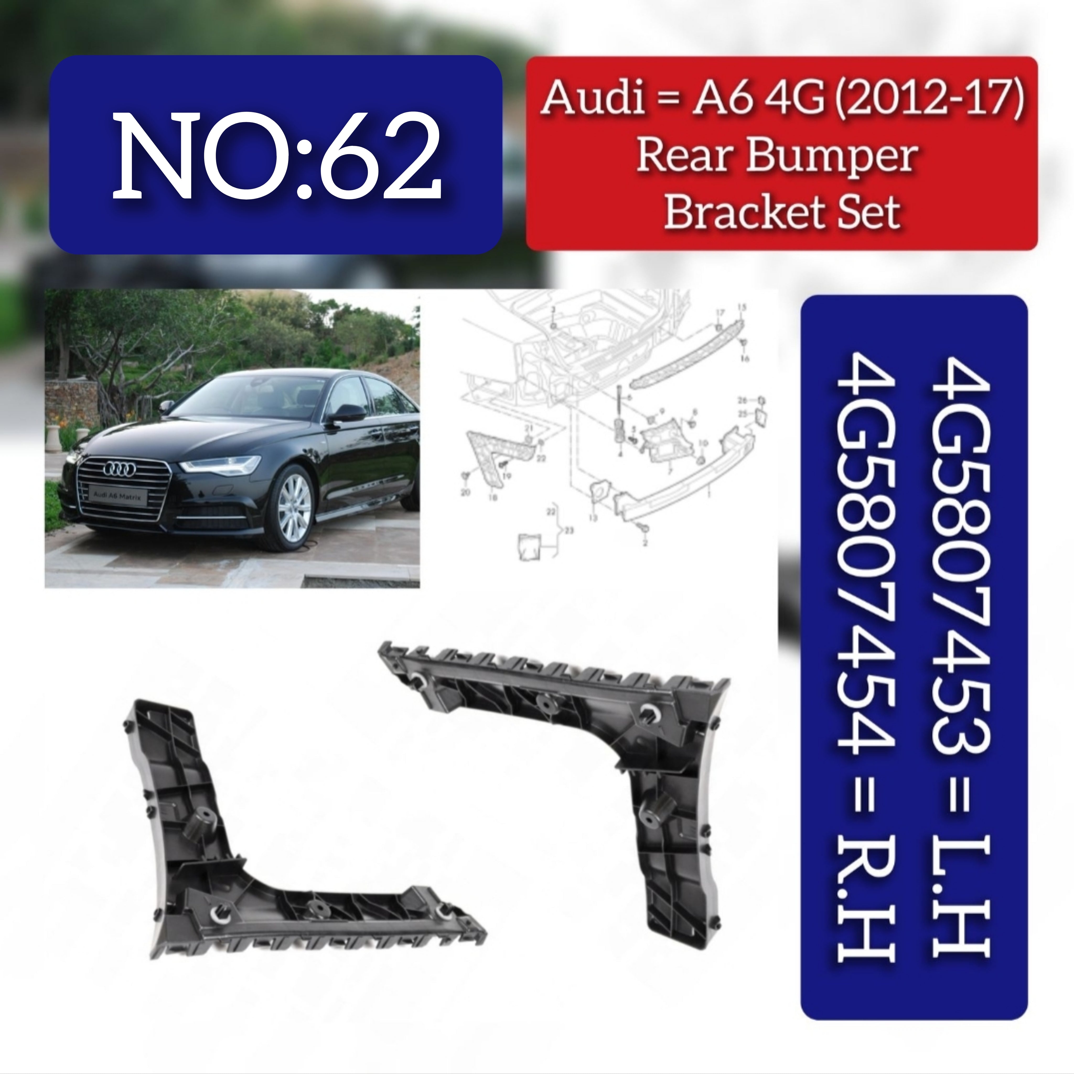 This pair of rear bumper brackets (Left 4G5807453 & Right 4G5807454) is specifically designed for compatibility with AUDI A6 C7 (4G2, 4GC) | A6 / S6 2012-2017. These brackets ensure a secure and proper fit for your vehicle's bumper, providing peace of mind and smooth driving experience.