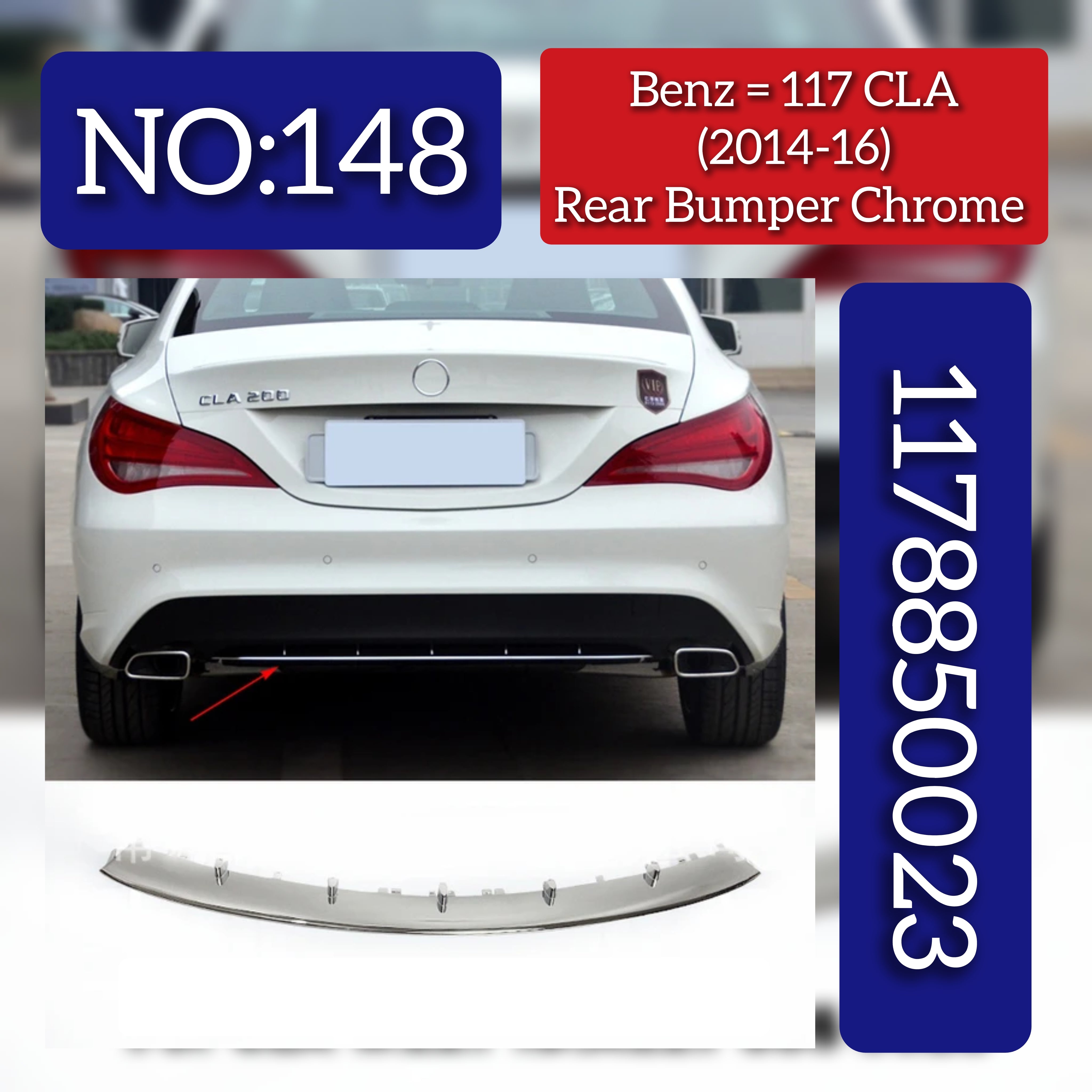Upgrade your vehicle with a sleek and durable Rear Bumper Chrome. Designed specifically for the MERCEDES BENZ CLA C117 2014-2016, this bumper adds a touch of luxury and protection to your car. Made with high-quality materials, it is compatible with your vehicle's design and guarantees long-lasting use.