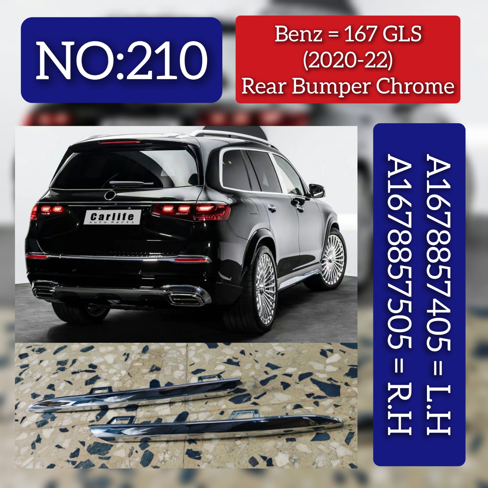 As an expert in automotive design, we've developed a rear bumper set that is compatible with the MERCEDES BENZ GLS W167 from 2020-2022. Made with high-quality chrome, it adds a sleek, modern touch to your vehicle while providing durable protection. Trust us for excellent fit and function.