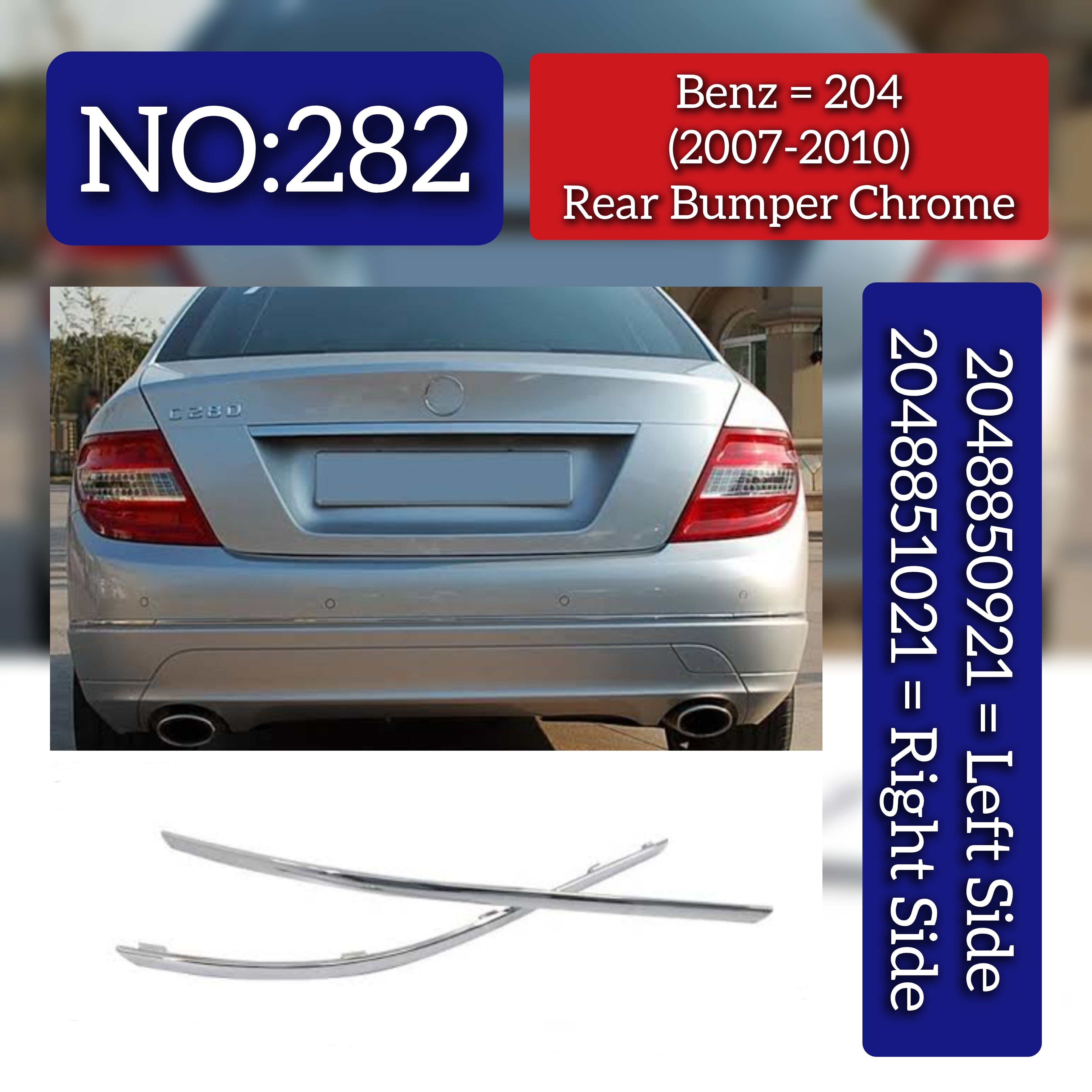 Enhance the exterior of your Mercedes Benz C-Class (W204) 2007-2010 with these precision-engineered chrome rear bumpers. Designed for both the left (2048850921) and right (2048851021) sides, these bumpers offer a seamless fit and superior durability. Crafted to maintain the vehicle’s original aesthetic, they provide enhanced protection against minor impacts while adding a polished, high-end finish to your car’s rear. Ideal for professional replacement or upgrade, these components ensure reliable performance and long-lasting style.