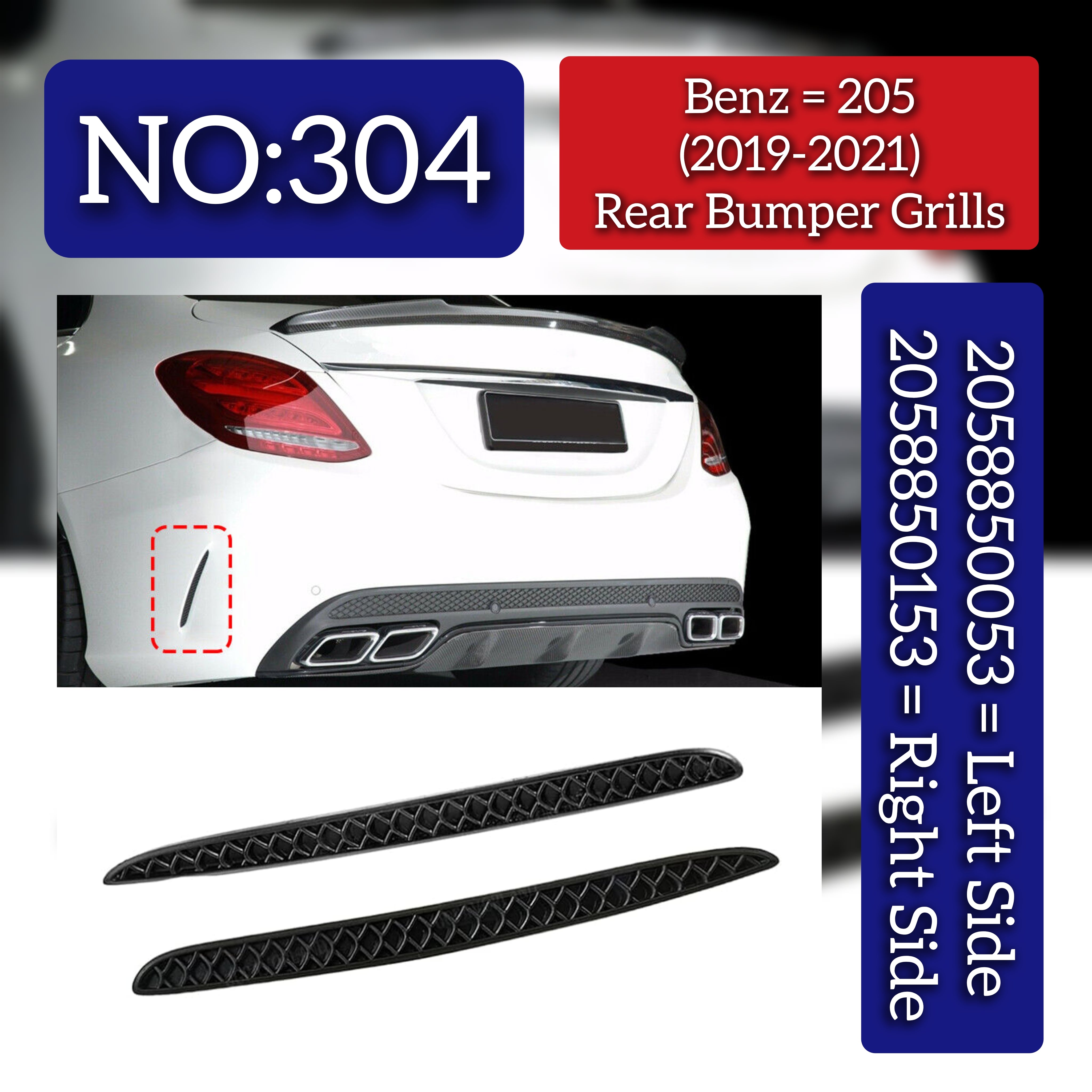 Enhance your Mercedes-Benz C-CLASS W205 (2019-2021) with these precision-engineered rear bumper grills, left (2058850053) and right (2058850153). Designed for perfect fit and durability, they restore the vehicle’s original aesthetics while ensuring optimal airflow and protection. Crafted to meet OEM standards, these grills provide a seamless replacement that maintains your car’s premium look and performance. Ideal for professional repairs or upgrades, they guarantee reliable quality and compatibility.