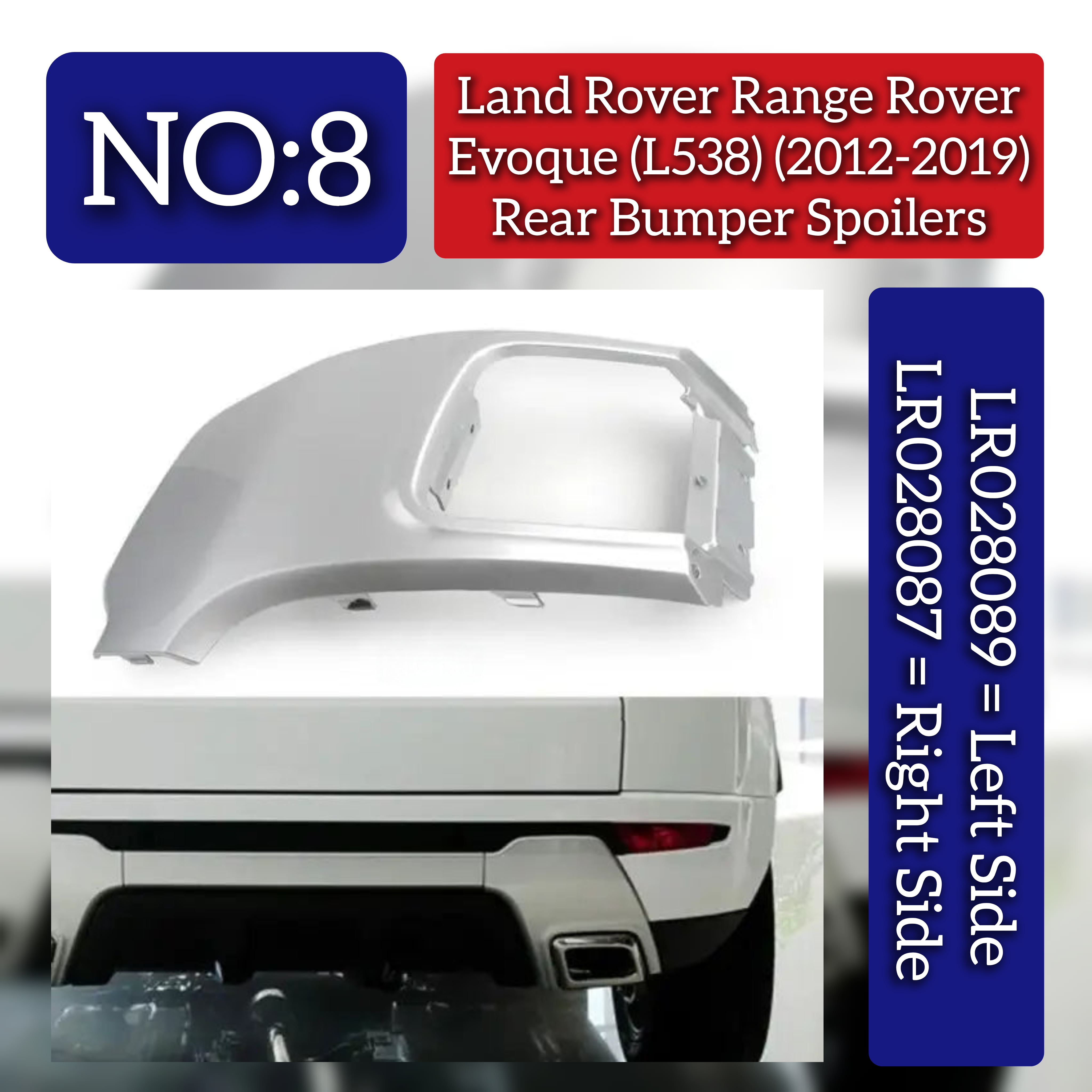 These silver rear bumper spoilers, right LR028087 and left LR028089, are precision-engineered for the Land Rover Range Rover Evoque L538 (2012–2019). Designed to seamlessly fit the original contours, they enhance your vehicle’s aerodynamic profile, contributing to improved stability and reduced drag. Crafted to meet strict OEM standards, these spoilers provide an expert upgrade that combines aesthetic refinement with functional benefits, protecting the rear bumper while maintaining the Evoque’s distinctive style. Ideal for enthusiasts seeking both performance and a sleek, cohesive look.