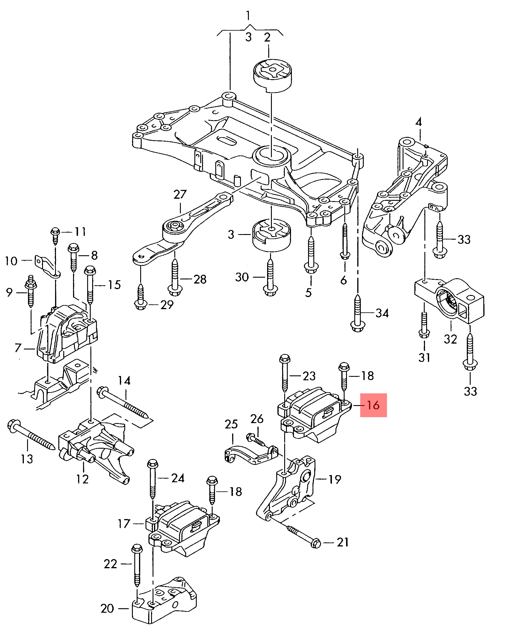 Rear Left Engine Transmission Motor Mount 1K0199555 Compatible With Audi Q3 1K0199555