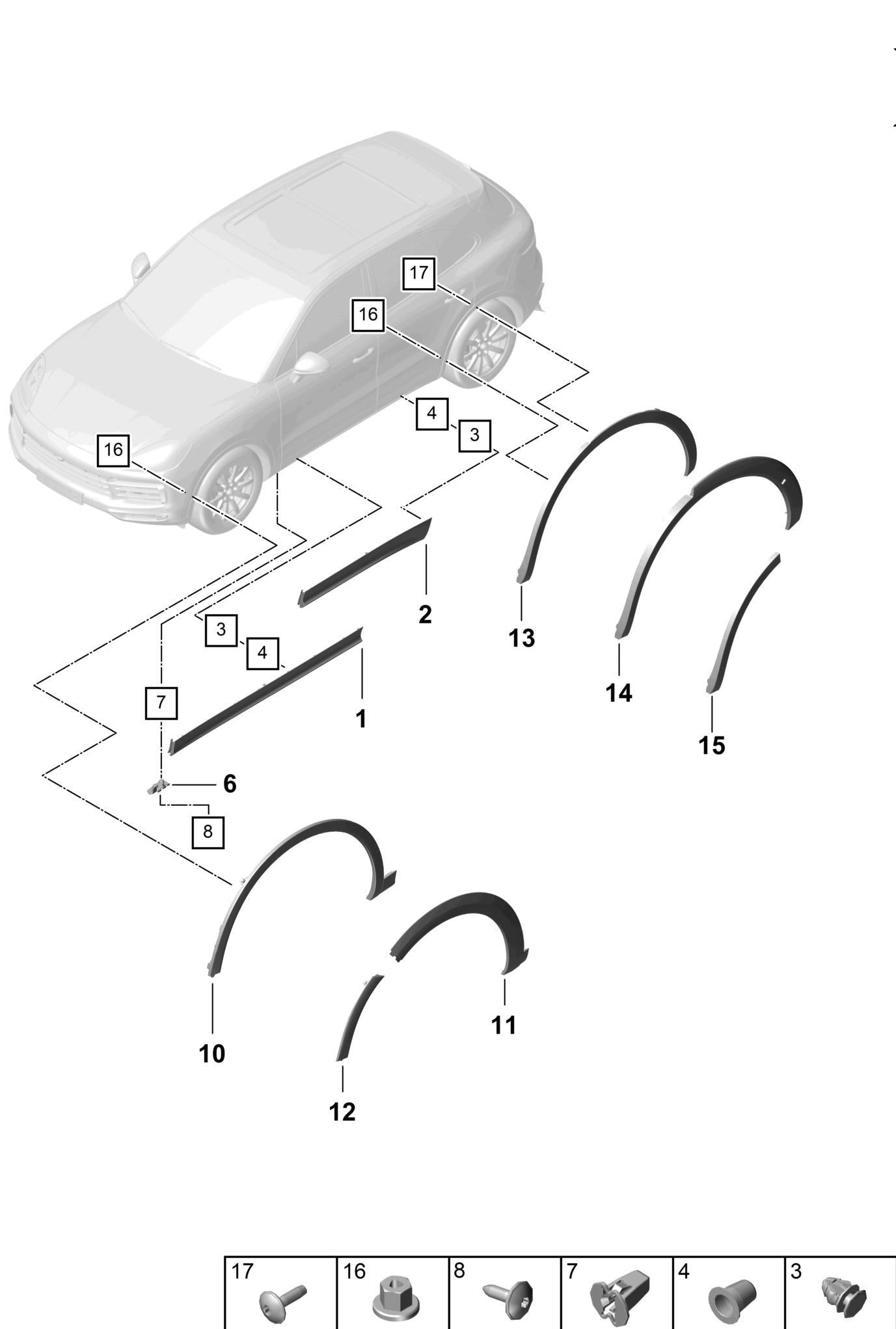 Enhance the aesthetics of your Porsche Cayenne 2020 with our high-quality Rear Left Wheel Arch (EYEBROW) 9Y0854731K. Designed to seamlessly fit and compatible with your vehicle, this product adds a touch of sophistication. Made from durable materials, it provides long-lasting protection against the elements. Upgrade your car's appeal with ease.