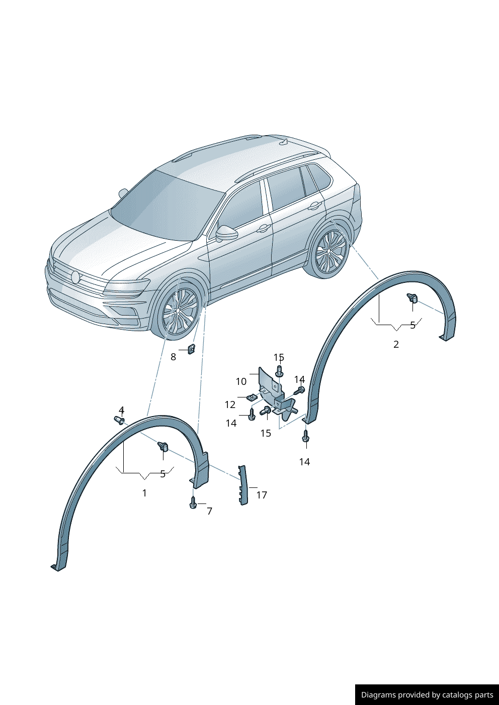 This rear left wheel eyebrow (part number 5NA854819J) is designed specifically for VW Tiguan models AD1 and AX1 from 2016 to 2020. Engineered to fit precisely, it restores the vehicle's original appearance while protecting the wheel arch from dirt and minor damage. Manufactured to meet OEM standards, it ensures durability and seamless integration with your Tiguan’s bodywork. Ideal for maintaining both aesthetic and functional integrity in your vehicle’s rear left wheel area.