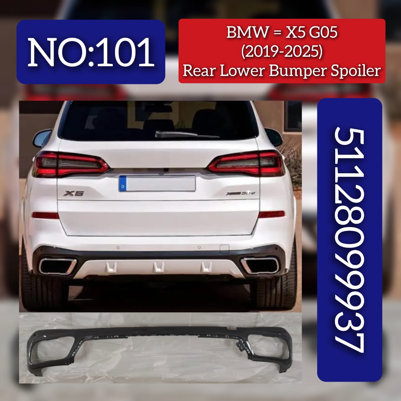 Increase the performance and style of your BMW X5 (G05) with the Rear Lower Bumper Spoiler 51128099937. Designed and tested for compatibility, this spoiler enhances aerodynamics and adds a sporty touch to your vehicle. Upgrade your driving experience with this precision-engineered product.