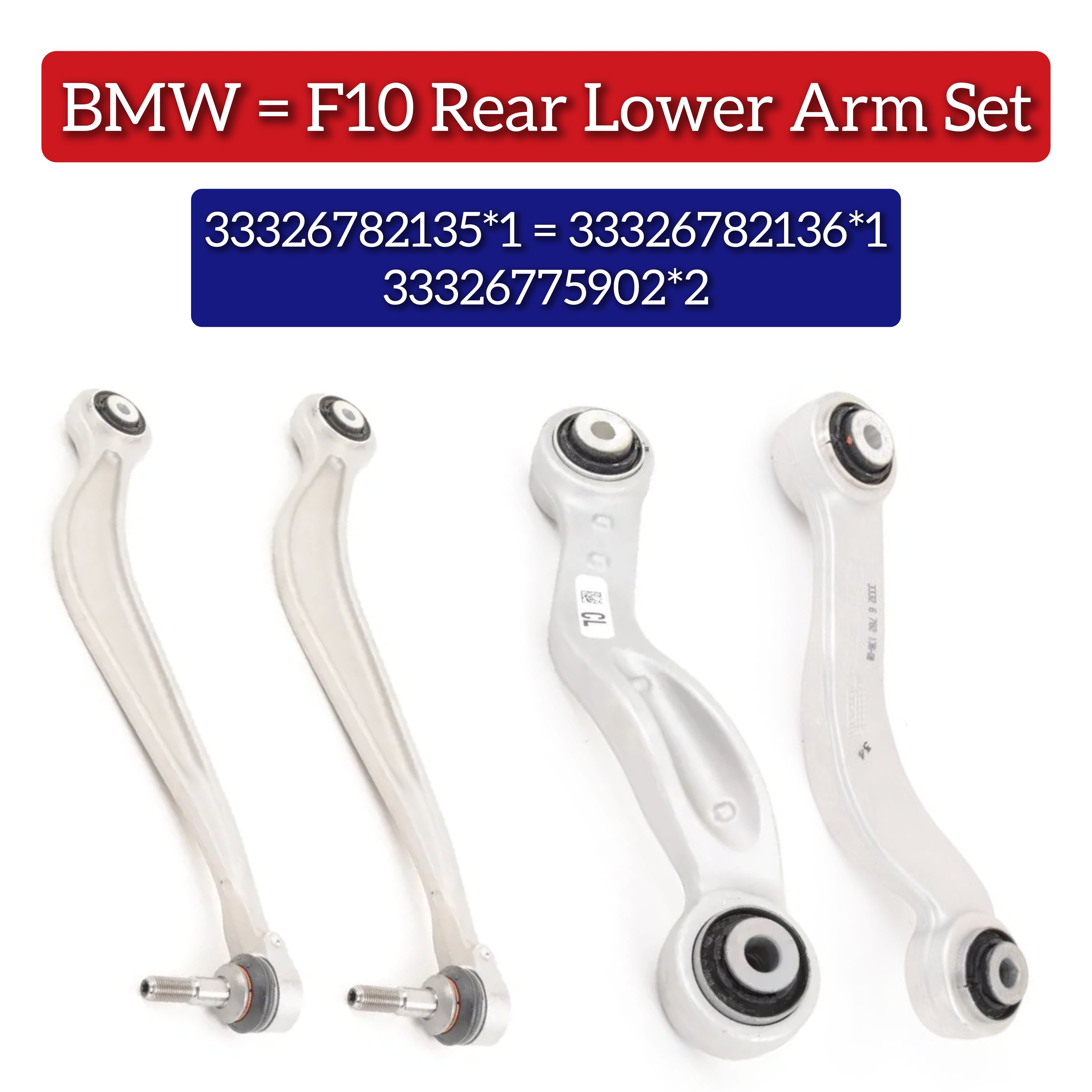 Engineered to fit perfectly into BMW 5 Series F10, this set of four Rear Lower Control Arms (part numbers: 33326782135, 33326782136, 33326775902) guarantees improved handling and stability. Crafted with precision, these control arms ensure a smooth and safe driving experience.